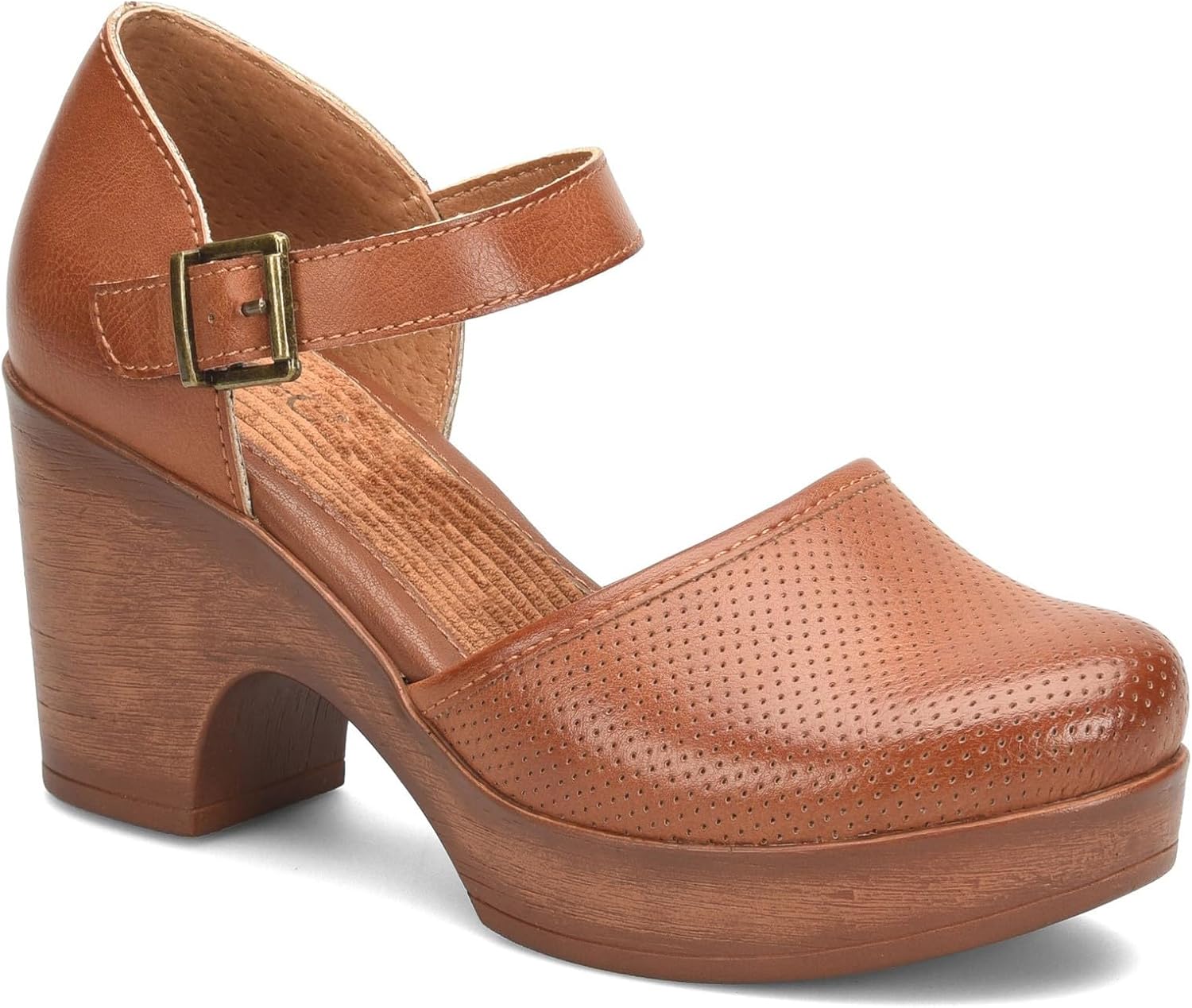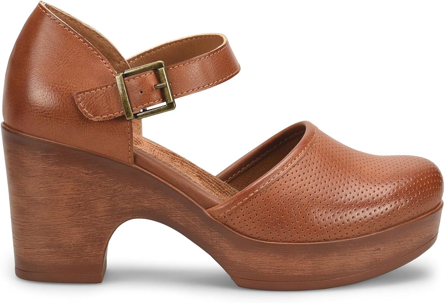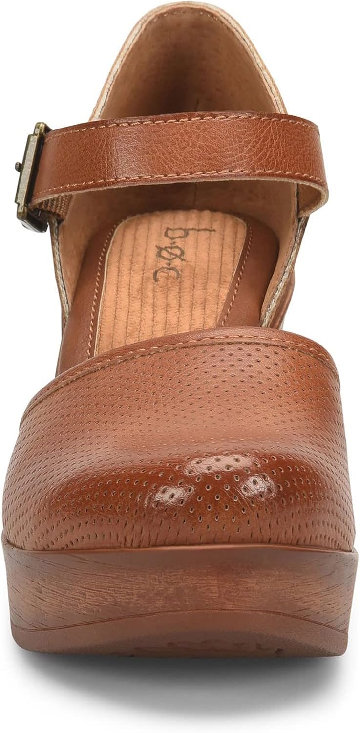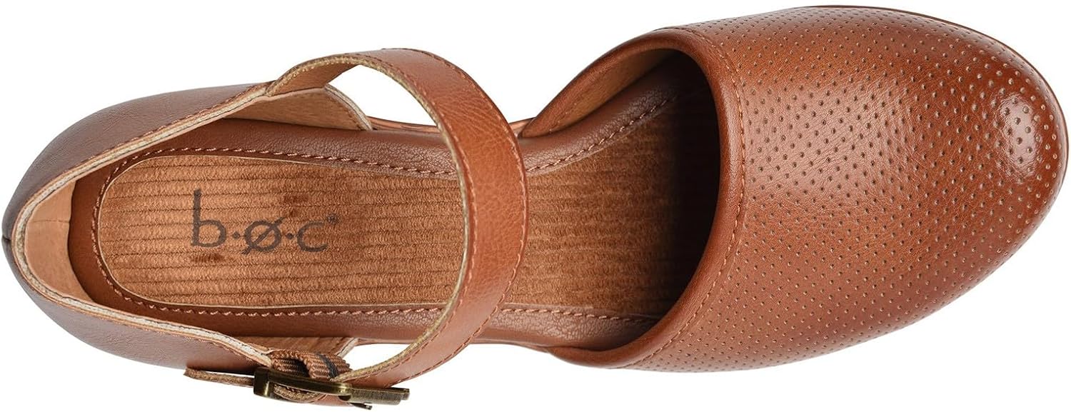 Women’s b.o.c, Gia Clog. The Gia clog from b.o.c is an essential, classic design with an adjustable strap to keep your foot in place. A cushioned footbed and block platform heel make these shoes comfortable enough for all day wear. The retro look, rounded toe and chic buckle details keep this look on trend whether you’re headed to the office or out to dinner with friends. Easy care manmade uppers in a platform clog stylePlush cushioned footbedAdjustable strap for a secure fitWoodgrain look platform midsole and high heelSynthetic outsole
