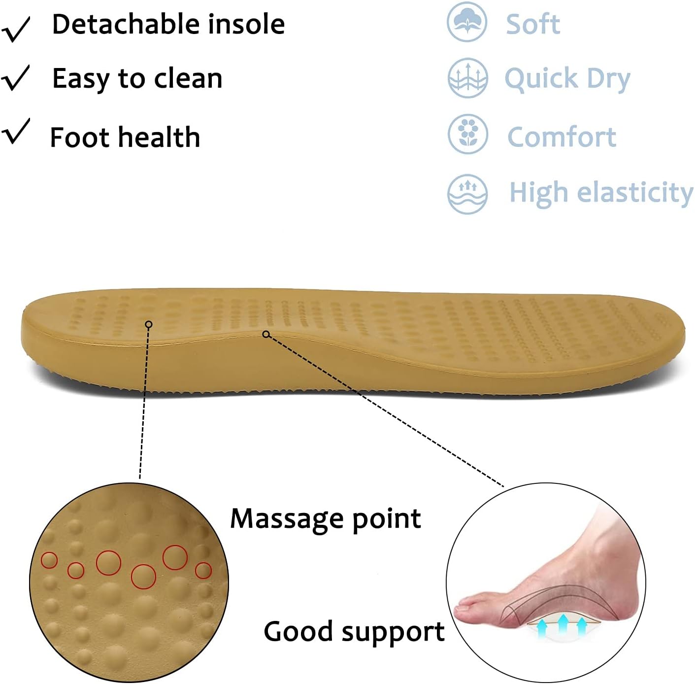 The insole is removable design, easy to clean; the whole shoe can be washed, easy to clean.