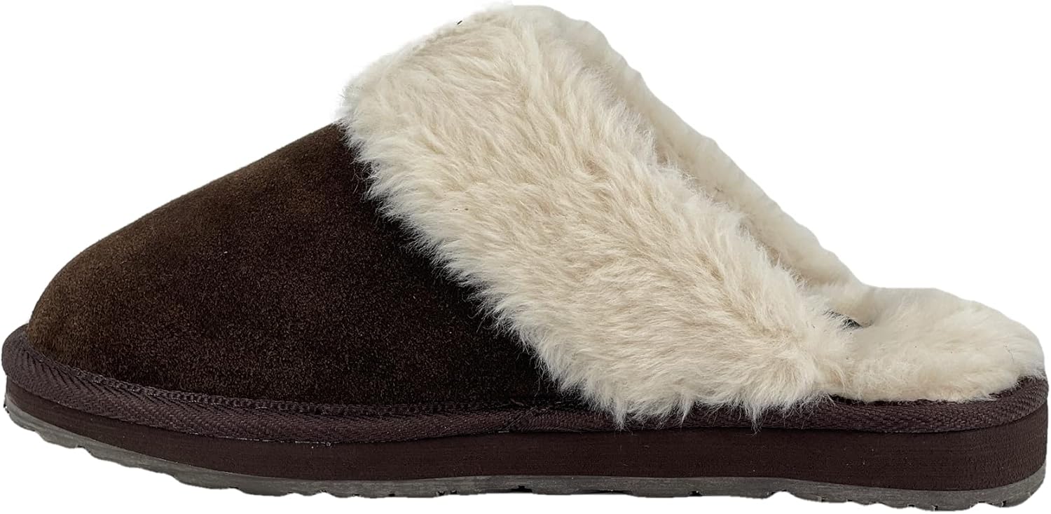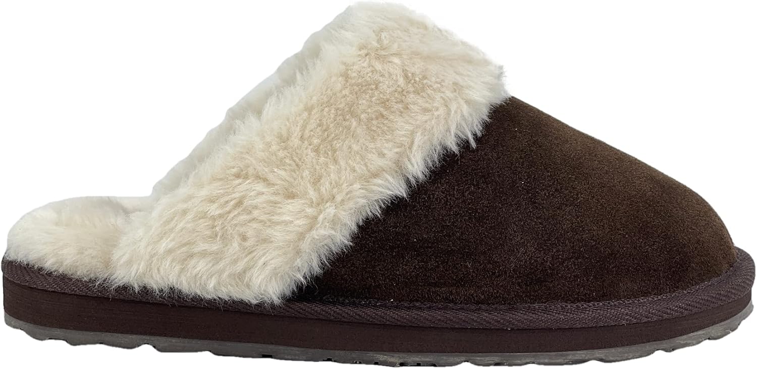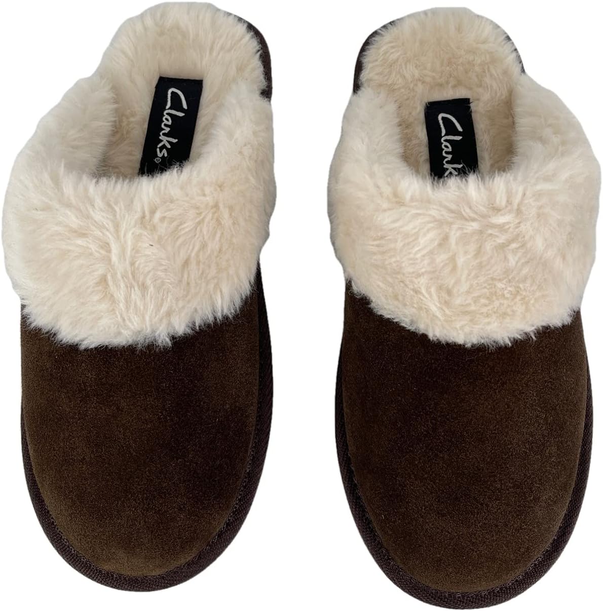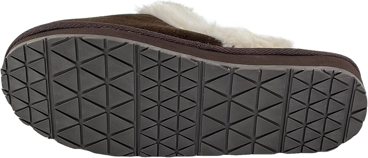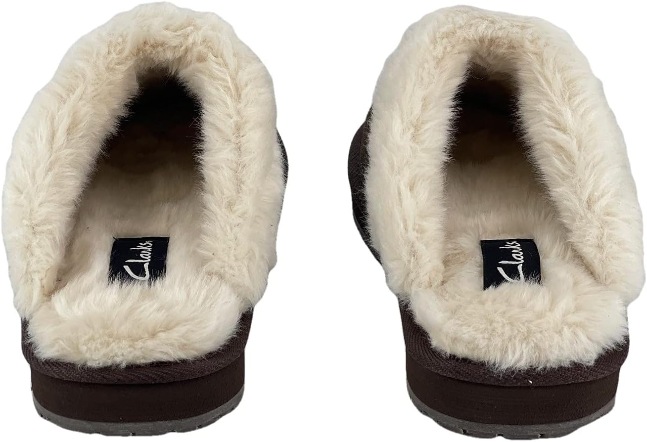 Clarks Womens Open Back Suede Leather Comfort Clog Slipper JMS0583C – Plush Faux Fur Trim – Indoor Outdoor House Slippers For Women