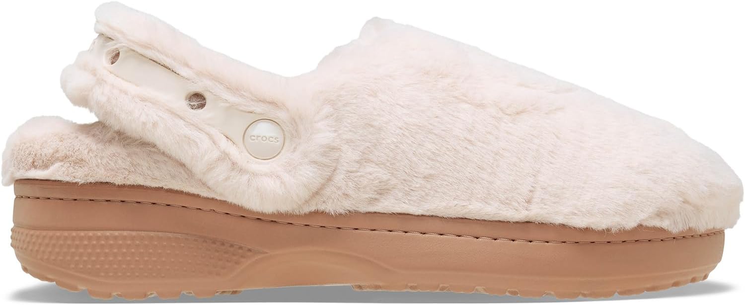 For ultimate cozy comfort and style, check out the new Crocs Classic Unfurgettable Clogs. This new style combines the versatility of our Classic Lined Clog with the all-day comfort of our Cozy Slipper. The faux fur upper provides the coziness of a house slipper, and the versatility of the Croslite outsole takes you wherever your day goes. The sink-in soft footbed offers added comfort, while the faux fur backstrap features Jibbitz holes for personalization. Slip into the Classic Unfurgettable Clog to maximize cozy comfort and style as you go about your day. Polyester upper, lining, and insole. Pivoting faux fur backstrap with Jibbitz holes ensures a snug fit and personal flair. Slip-on style. Low-top design Round toes. EVA outsole.