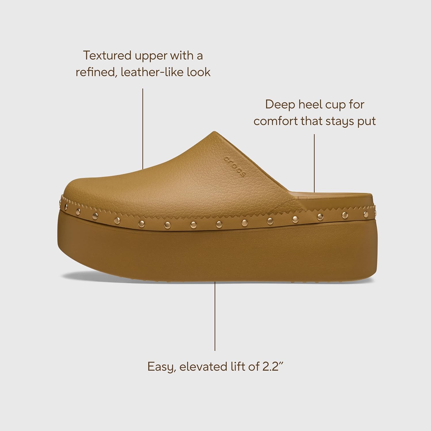 The Dylan Platform Clog offers a modern alternative to the Classic Clog collection with an elevated silhouette while retaining the iconic comfort.