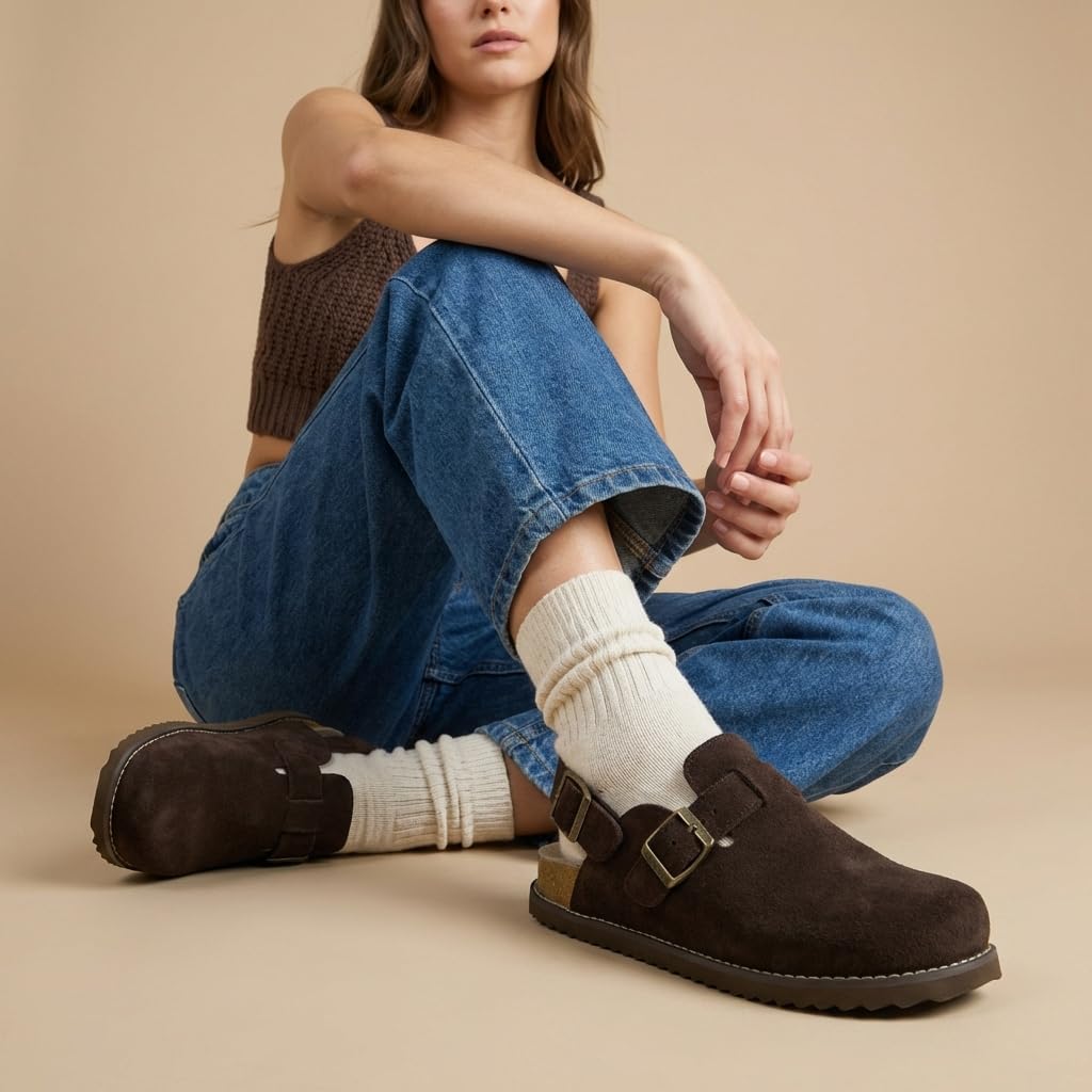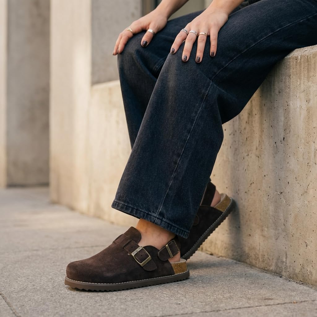Discover everyday comfort and versatility with the CUSHIONAIRE Brooklyn, a standout in modern shoes for women who want style that adapts. Crafted with a genuine suede upper and supportive memory foam footbed, these clogs offer both durability and plush, lasting comfort. Designed as clogs for women that blend fashion and function, the Brooklyn features a closed-toe silhouette, breathable back, and a molded footbed that supports your stride all day. Whether you’re stepping out or relaxing at home, these effortlessly complement your routine. Perfect as slides for women who want more than basic styles, the Brooklyn delivers a custom fit with its adjustable double buckle. These are slip on shoes women can rely on for quick wear, with the added benefit of strap adjustability for personalized comfort and support. With a secure slingback design and flexible outsole, these shoes for women are ready for anything from quick errands to casual get-togethers. Simple, versatile, and built for the season, the Brooklyn is your new favorite go-to.