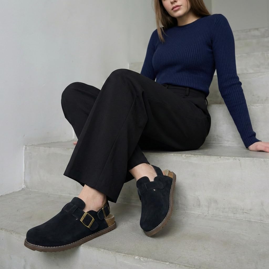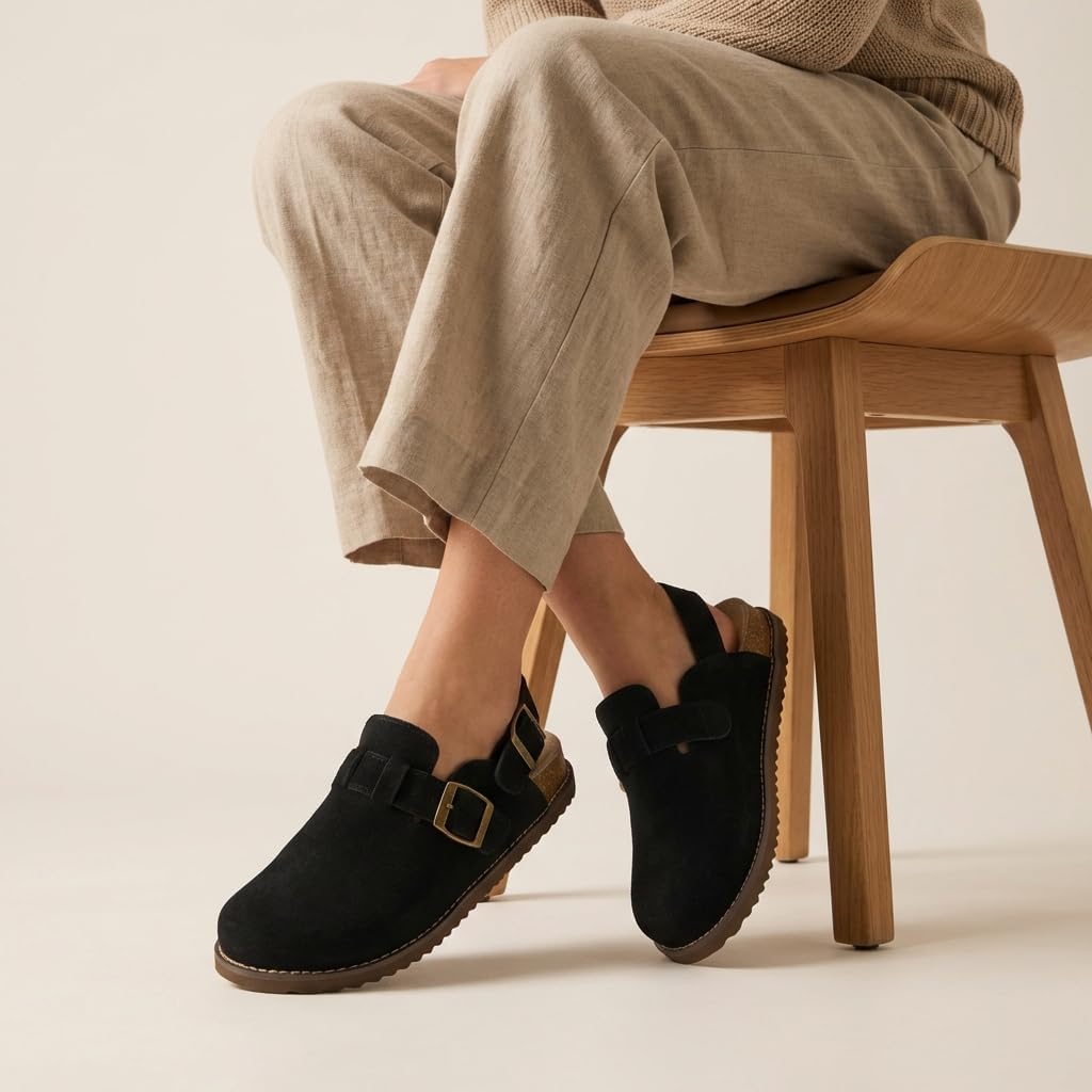 Discover everyday comfort and versatility with the CUSHIONAIRE Brooklyn, a standout in modern shoes for women who want style that adapts. Crafted with a genuine suede upper and supportive memory foam footbed, these clogs offer both durability and plush, lasting comfort. Designed as clogs for women that blend fashion and function, the Brooklyn features a closed-toe silhouette, breathable back, and a molded footbed that supports your stride all day. Whether you’re stepping out or relaxing at home, these effortlessly complement your routine. Perfect as slides for women who want more than basic styles, the Brooklyn delivers a custom fit with its adjustable double buckle. These are slip on shoes women can rely on for quick wear, with the added benefit of strap adjustability for personalized comfort and support. With a secure slingback design and flexible outsole, these shoes for women are ready for anything from quick errands to casual get-togethers. Simple, versatile, and built for the season, the Brooklyn is your new favorite go-to.