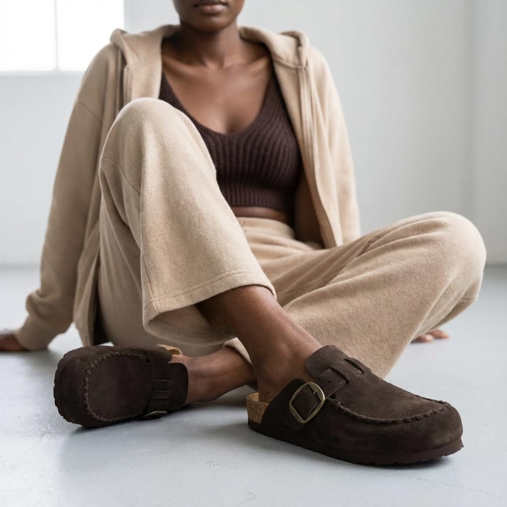 Step into everyday ease with the Canoe, a versatile slip-on mule crafted in genuine suede with moc-toe stitching and an adjustable buckle. Designed as moccasin style slippers for women, it blends casual elegance with all-day comfort, making it a favorite choice for both home and on the go. The cushioned insole and supportive footbed turn these into reliable house shoes while still stylish enough to wear outside. This balance makes them some of the most versatile mules for women, effortlessly pairing with jeans, leggings, or relaxed loungewear. Perfect as transitional women footwear, the Canoe also makes a smart seasonal pick, designed to fit seamlessly into your wardrobe as one of the most comfortable and stylish fall shoes for women 2025.