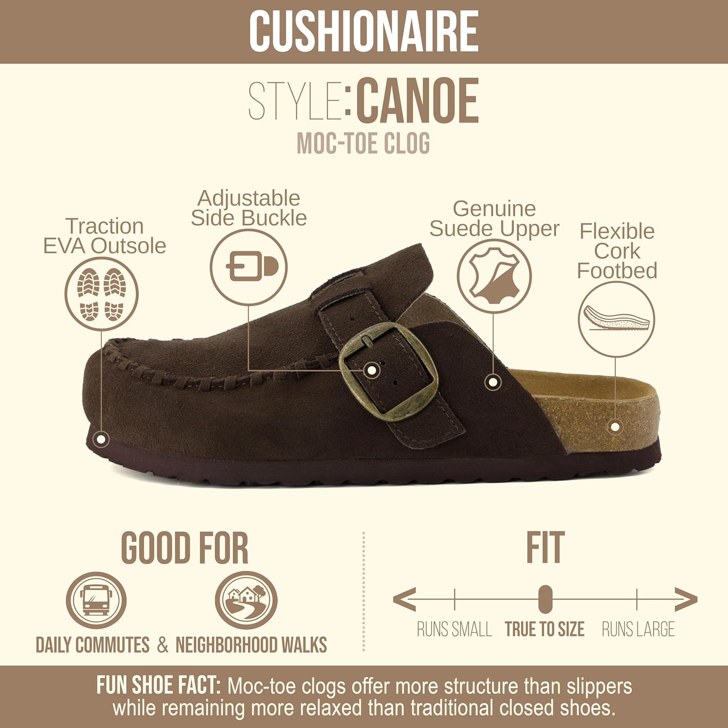 CUSHIONAIRE Canoe Genuine Suede Clogs for Women Footwear with Moc Toe Design – Casual Slip On Womens Shoes