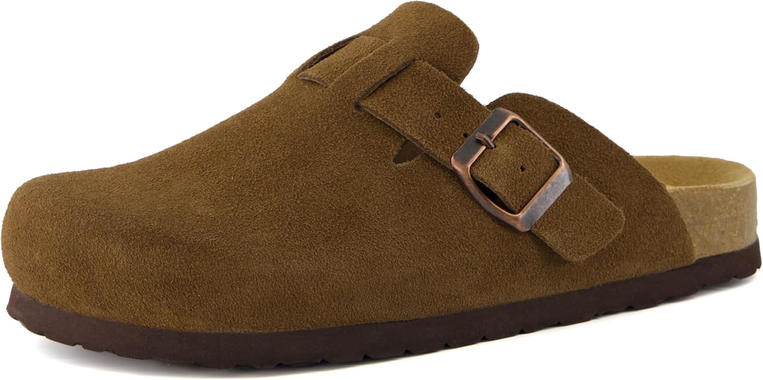Step into comfort with the CUSHIONAIRE Hana, a versatile clog crafted from soft genuine suede. These suede clogs feature a contoured footbed that cushions every step, making them a reliable choice for work, errands, or evenings at home. The slip-on silhouette combines ease and support, giving you an effortless style that pairs with denim, trousers, or cozy layers. Designed for everyday wear, Hana works as both stylish womens mules and durable womens house shoes. The clean profile offers the coverage of closed toe sandals women can wear with ease, while still delivering the lightweight comfort of a mule. Quick to slip on, they provide the convenience of slip on slides for women with the polish of genuine suede craftsmanship. With a stable sole and roomy fit, they offer the comfort of slippers while maintaining structure for all-day use. The versatile outsole transitions easily from indoors to outdoors, so your comfort goes wherever you do. Whether styled as womens mules, relaxed womens house shoes, or classic suede clogs, Hana delivers lasting support and timeless appeal.
