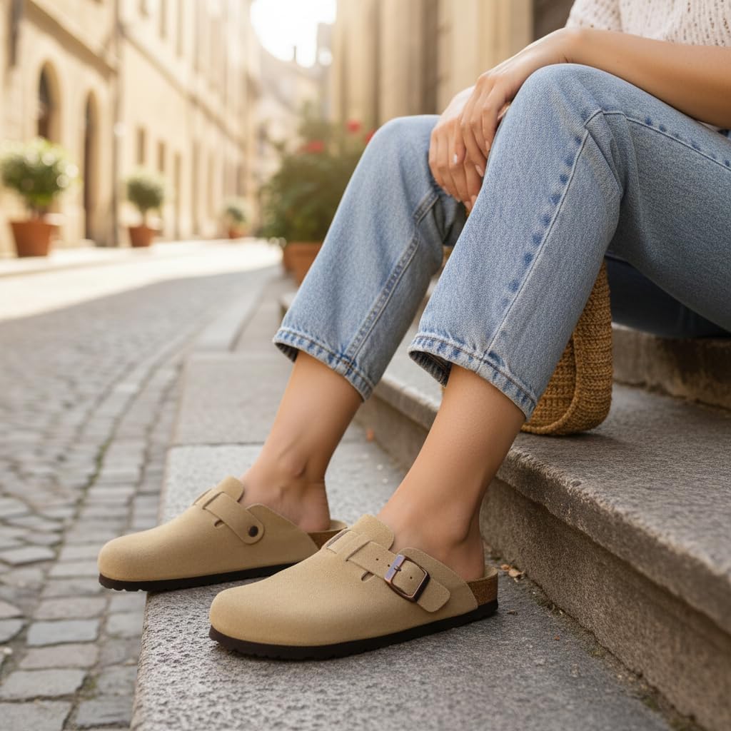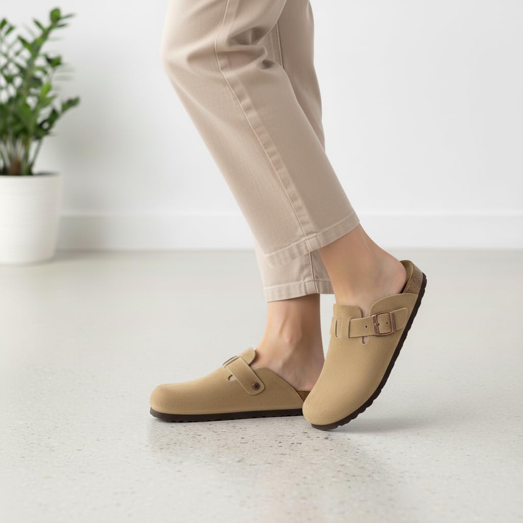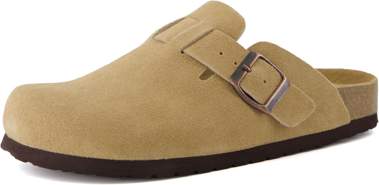 Step into comfort with the CUSHIONAIRE Hana, a versatile clog crafted from soft genuine suede. These suede clogs feature a contoured footbed that cushions every step, making them a reliable choice for work, errands, or evenings at home. The slip-on silhouette combines ease and support, giving you an effortless style that pairs with denim, trousers, or cozy layers. Designed for everyday wear, Hana works as both stylish womens mules and durable womens house shoes. The clean profile offers the coverage of closed toe sandals women can wear with ease, while still delivering the lightweight comfort of a mule. Quick to slip on, they provide the convenience of slip on slides for women with the polish of genuine suede craftsmanship. With a stable sole and roomy fit, they offer the comfort of slippers while maintaining structure for all-day use. The versatile outsole transitions easily from indoors to outdoors, so your comfort goes wherever you do. Whether styled as womens mules, relaxed womens house shoes, or classic suede clogs, Hana delivers lasting support and timeless appeal.