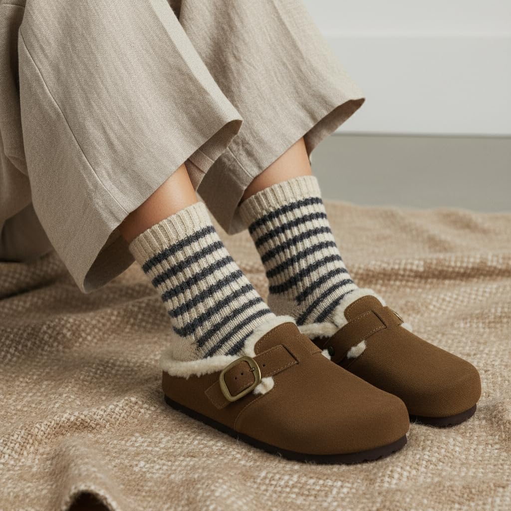 Experience cozy versatility with the CUSHIONAIRE Haven — a thoughtful balance between indoor comfort and everyday style. Designed for women who value both softness and support, these clogs for women are a go-to choice for cold mornings, casual afternoons, and everything in between. Lined with plush faux fur and wrapped in genuine leather, each pair delivers a warm, secure fit you’ll reach for season after season. Unlike ordinary slippers, these womens slip on shoes are built for more than lounging. The slip-on design makes getting out the door effortless, while the cushioned cork footbed and adjustable buckle offer customized comfort. Whether you’re running errands or relaxing at home, Haven moves with you — providing stability, ease, and a touch of polish in every step. With their rounded silhouette and molded outsole, they even echo the comfort-first charm of potato shoes, blending that casual aesthetic with refined details and practical materials. These women’s mules offer the convenience of a slipper with the support of a structured shoe, making them a unique hybrid that complements a range of outfits. From jeans to loungewear, Haven adapts to your lifestyle effortlessly. Its indoor-outdoor sole means you can transition between rooms — or routines — without skipping a beat. As womens shoes, they prioritize ease, but never compromise on look or feel. Comfort should be simple. And with the Haven, it is — in every step, every day.