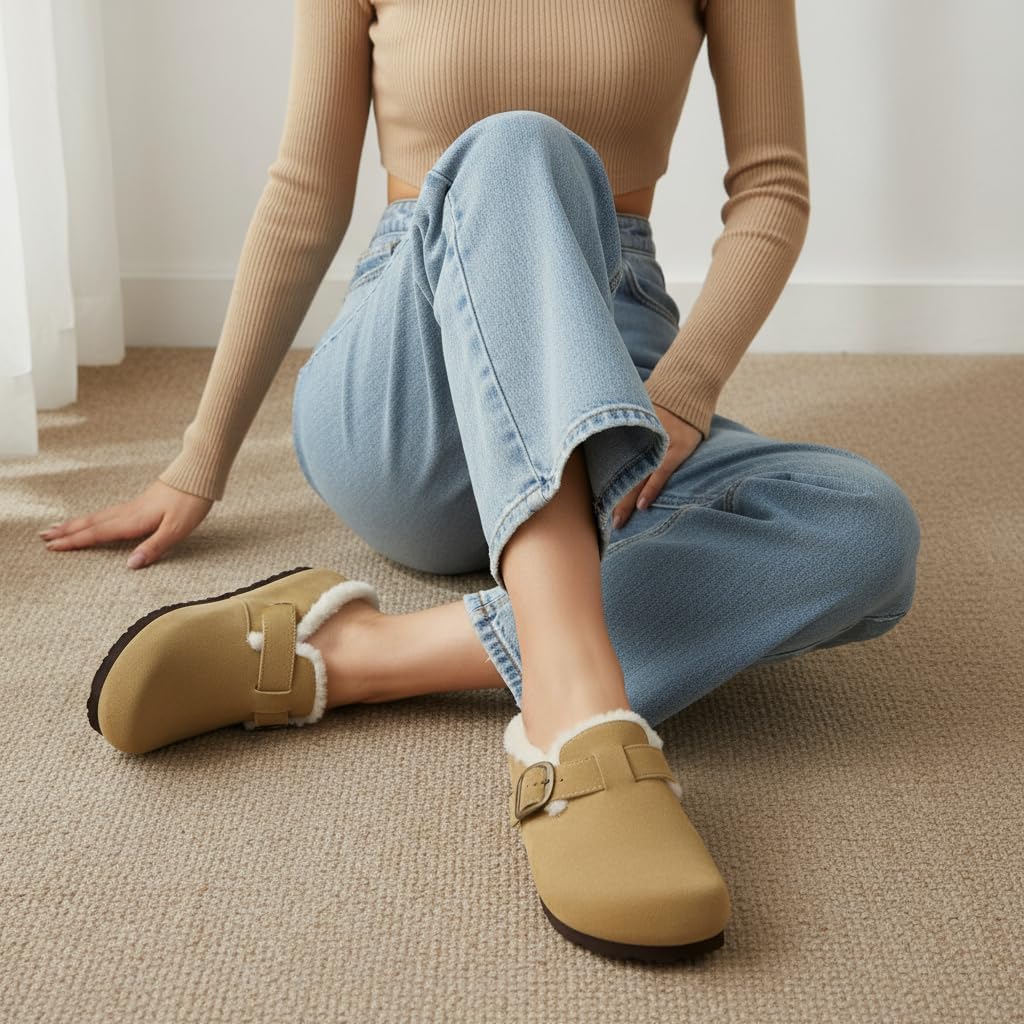 Experience cozy versatility with the CUSHIONAIRE Haven — a thoughtful balance between indoor comfort and everyday style. Designed for women who value both softness and support, these clogs for women are a go-to choice for cold mornings, casual afternoons, and everything in between. Lined with plush faux fur and wrapped in genuine leather, each pair delivers a warm, secure fit you’ll reach for season after season. Unlike ordinary slippers, these womens slip on shoes are built for more than lounging. The slip-on design makes getting out the door effortless, while the cushioned cork footbed and adjustable buckle offer customized comfort. Whether you’re running errands or relaxing at home, Haven moves with you — providing stability, ease, and a touch of polish in every step. With their rounded silhouette and molded outsole, they even echo the comfort-first charm of potato shoes, blending that casual aesthetic with refined details and practical materials. These women’s mules offer the convenience of a slipper with the support of a structured shoe, making them a unique hybrid that complements a range of outfits. From jeans to loungewear, Haven adapts to your lifestyle effortlessly. Its indoor-outdoor sole means you can transition between rooms — or routines — without skipping a beat. As womens shoes, they prioritize ease, but never compromise on look or feel. Comfort should be simple. And with the Haven, it is — in every step, every day.