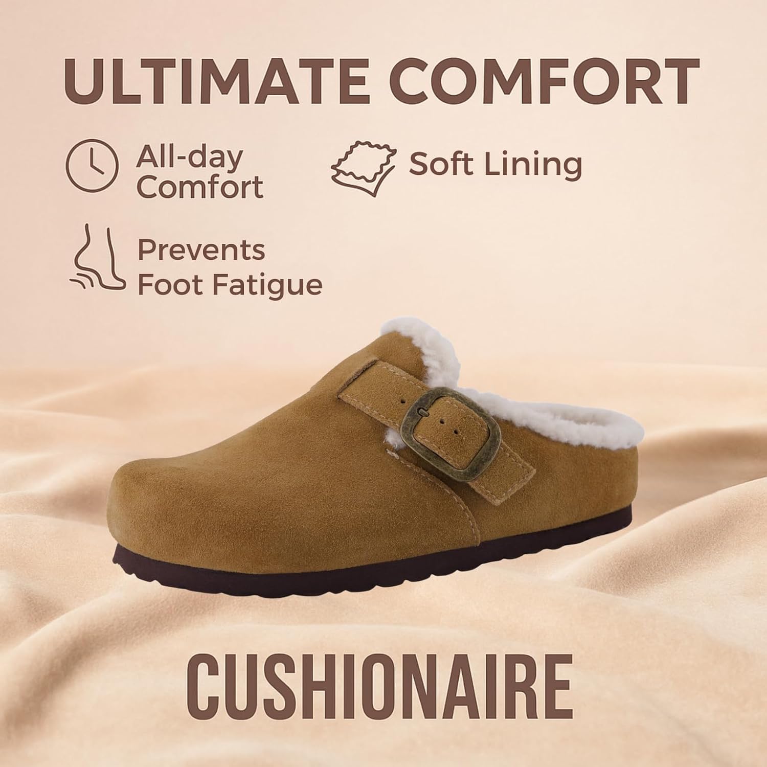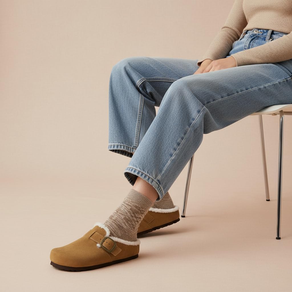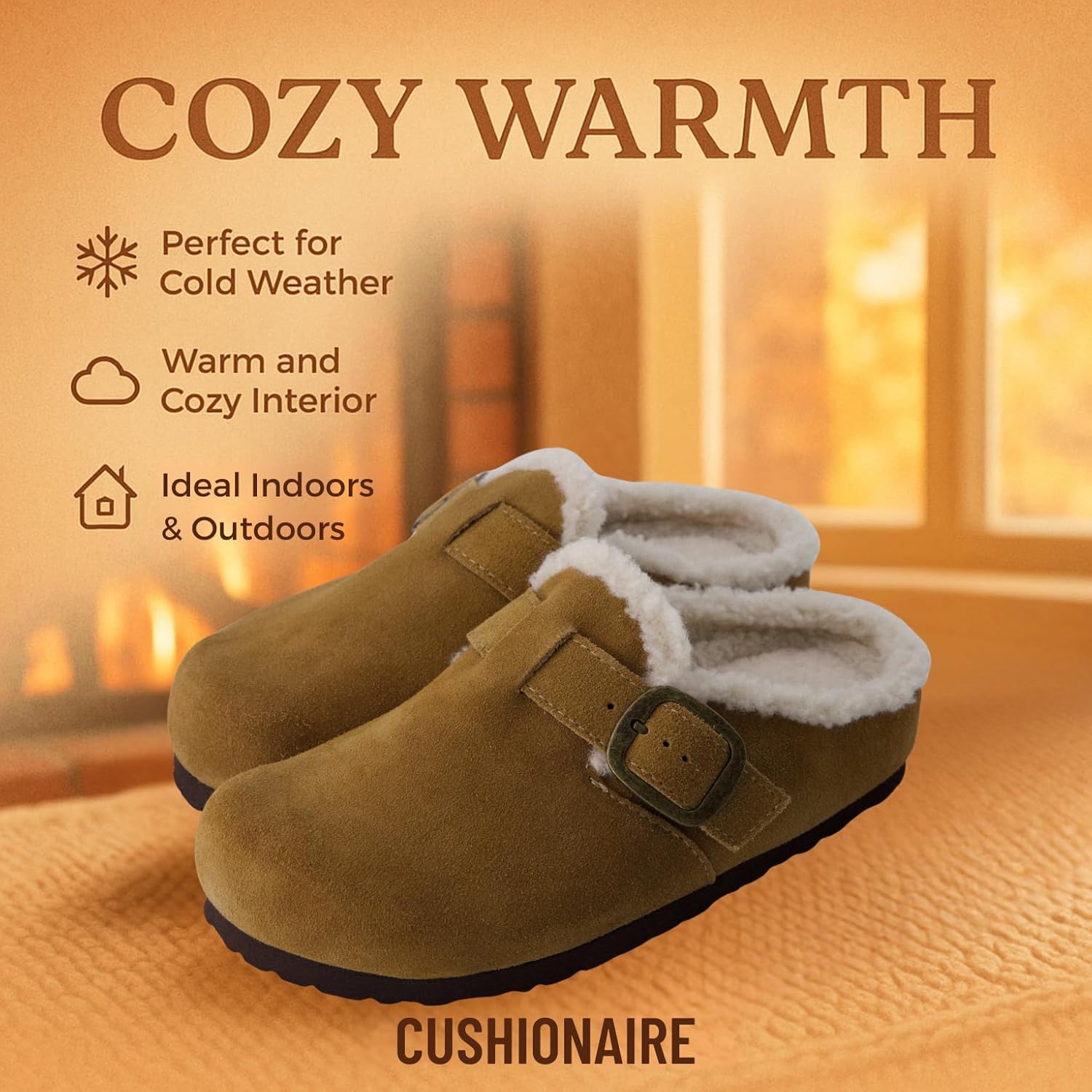 Experience cozy versatility with the CUSHIONAIRE Haven — a thoughtful balance between indoor comfort and everyday style. Designed for women who value both softness and support, these clogs for women are a go-to choice for cold mornings, casual afternoons, and everything in between. Lined with plush faux fur and wrapped in genuine leather, each pair delivers a warm, secure fit you’ll reach for season after season. Unlike ordinary slippers, these womens slip on shoes are built for more than lounging. The slip-on design makes getting out the door effortless, while the cushioned cork footbed and adjustable buckle offer customized comfort. Whether you’re running errands or relaxing at home, Haven moves with you — providing stability, ease, and a touch of polish in every step. With their rounded silhouette and molded outsole, they even echo the comfort-first charm of potato shoes, blending that casual aesthetic with refined details and practical materials. These women’s mules offer the convenience of a slipper with the support of a structured shoe, making them a unique hybrid that complements a range of outfits. From jeans to loungewear, Haven adapts to your lifestyle effortlessly. Its indoor-outdoor sole means you can transition between rooms — or routines — without skipping a beat. As womens shoes, they prioritize ease, but never compromise on look or feel. Comfort should be simple. And with the Haven, it is — in every step, every day.