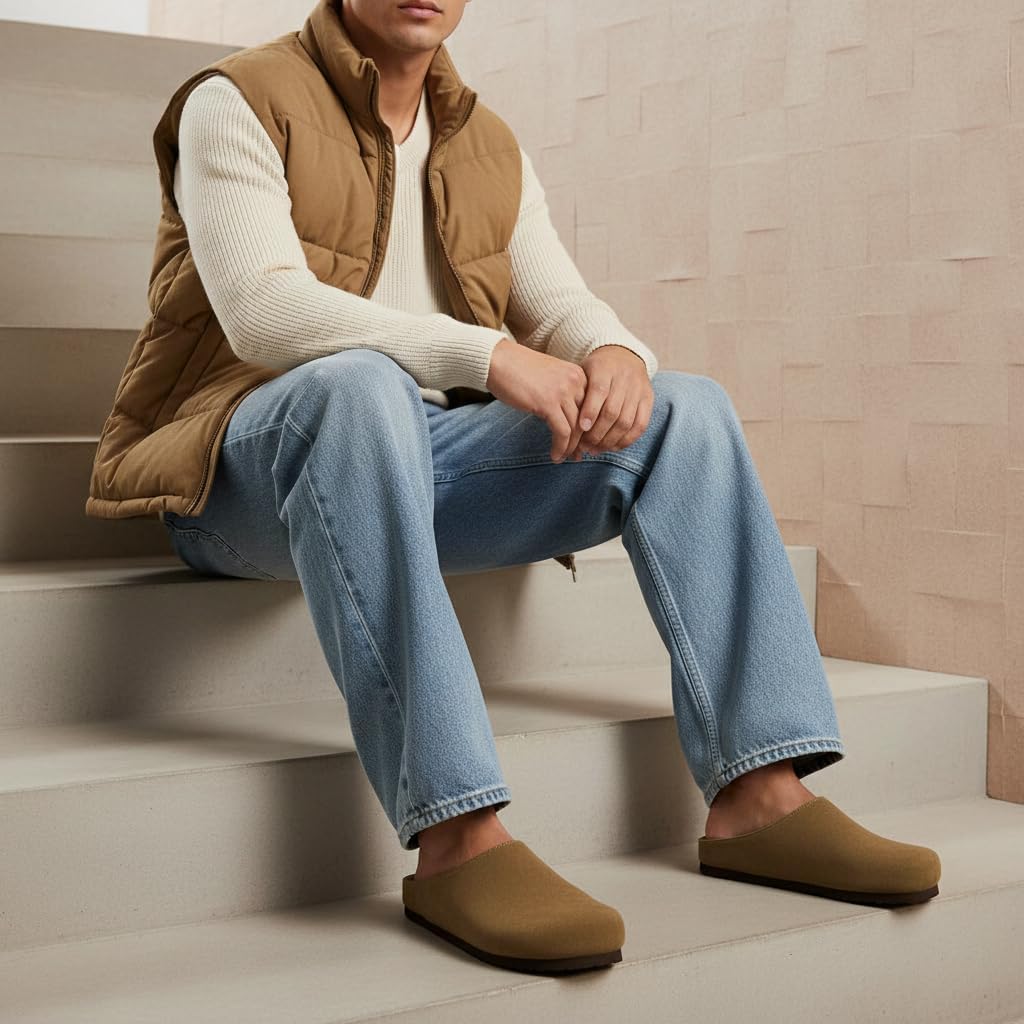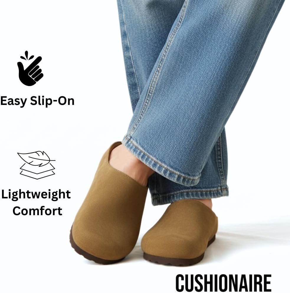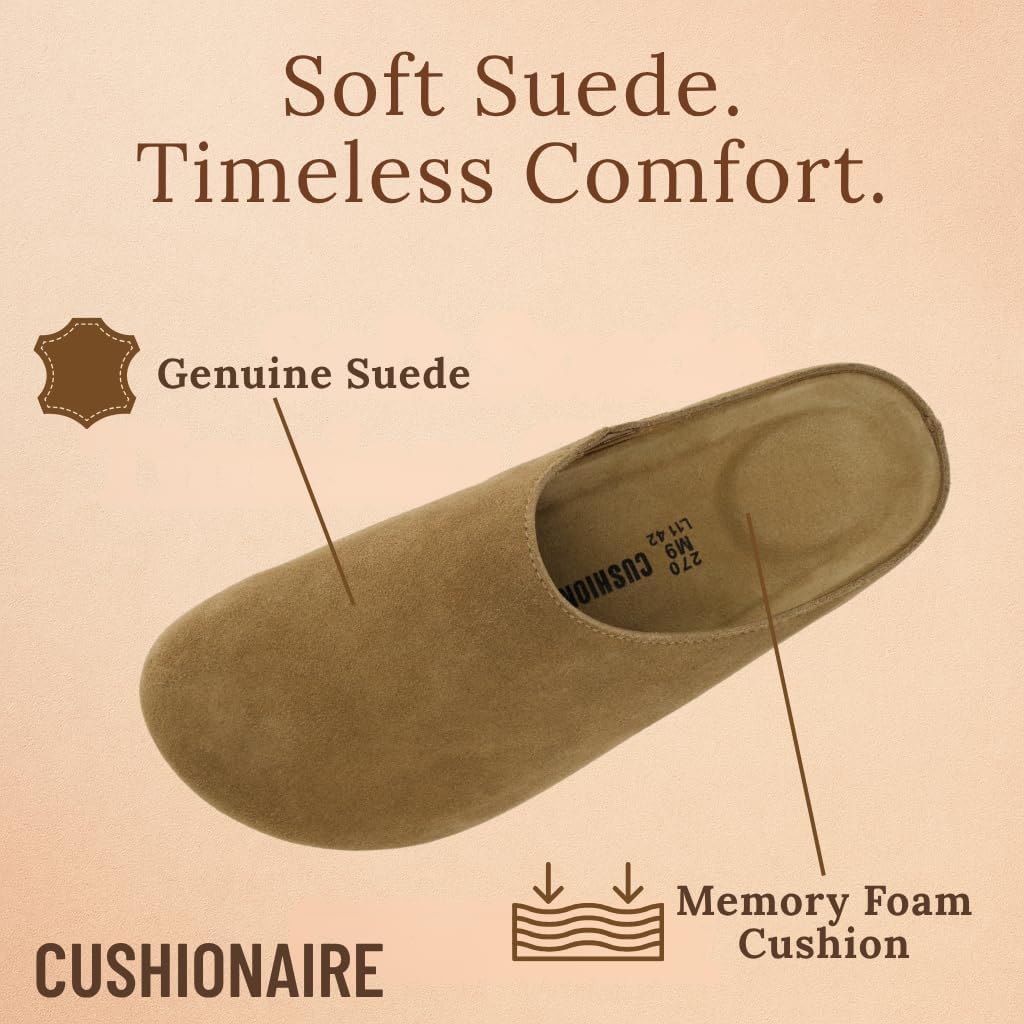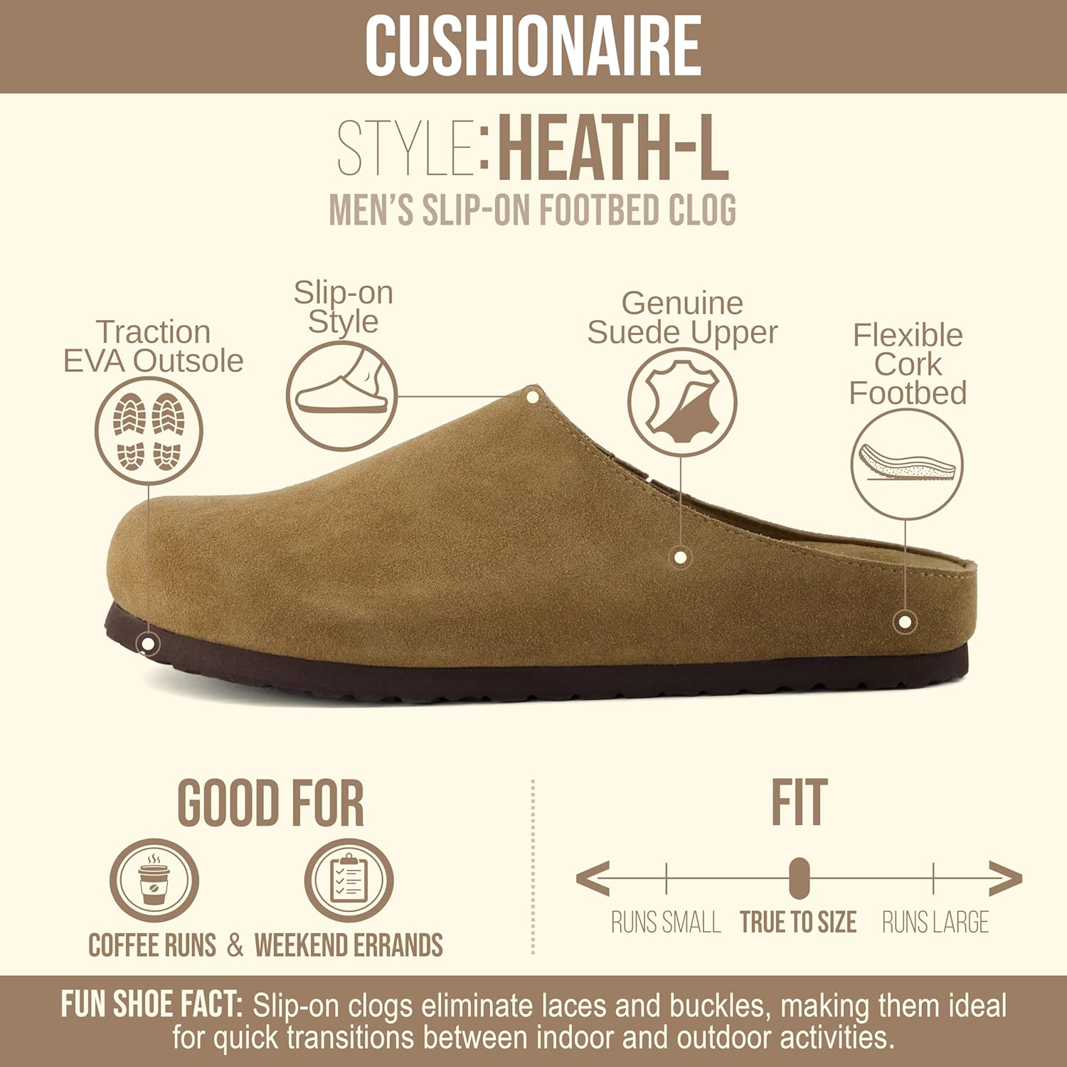 Step into all-day comfort and timeless design with the CUSHIONAIRE Heath Genuine Suede Leather Mens Clogs. Blending effortless wear with modern simplicity, these shoes are a versatile staple for your everyday routine. The soft suede upper and cushioned footbed provide a plush feel that makes them just as comfortable as your favorite men slippers, yet durable enough for light outdoor wear. Perfect for cooler days, the supportive construction and covered toe make these ideal shoes for winter or crisp fall mornings. A memory foam footbed contours to your feet, delivering personalized comfort with every step, while the lightweight sole ensures easy movement indoors or out. Whether you’re running quick errands, lounging at home, or stepping out for a relaxed weekend, these men clogs deliver cozy support that never compromises on style. With their clean lines and versatile design, the Heath Leather Mules are a smart addition to any wardrobe and one of this season’s fall fashion must haves. Designed to match the effortless vibe of laid-back dressing, they even embrace the comfort trend often called potato shoes — footwear that feels as soft and easy as slipping into your favorite pair of socks. Functional, minimal, and refined, these clogs are made for men who value lasting comfort and timeless appeal.