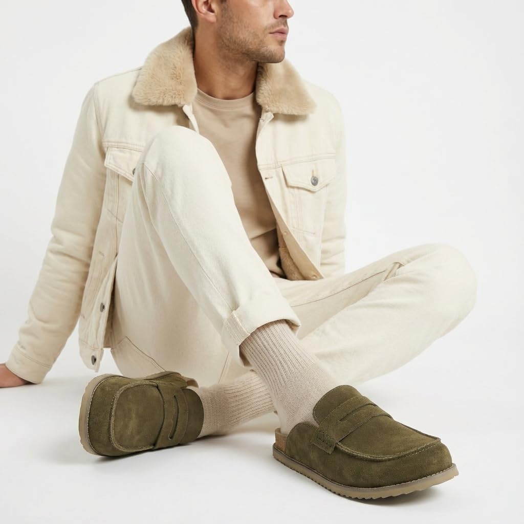 Step into timeless comfort and relaxed sophistication with the Wally Suede Clogs — the perfect blend of style and ease. Designed with a classic moc-toe silhouette and loafer-inspired details, these mens slides combine the refined look of loafers with the laid-back feel of slip-ons. The genuine suede upper provides a soft, premium texture that only improves with wear, while the cushioned insole supports your foot through long days of relaxation or errands. Crafted for versatility, these house slippers for men transition effortlessly from indoor lounging to outdoor moments. The sturdy, flexible sole delivers reliable traction and a lightweight feel, making them a practical choice for year-round comfort. With their detailed topstitching and thoughtful construction, these mens house shoes showcase craftsmanship that’s both durable and refined. Whether you’re heading out in casual attire or simply relaxing at home, these clogs complement any look. Their backless design allows easy on-and-off wear, while their timeless silhouette offers the feel of mens sandals with the structure of everyday footwear. For those who appreciate easy comfort and effortless style, the Wally Suede Clogs redefine what sandals men love most — function, comfort, and a touch of classic charm.