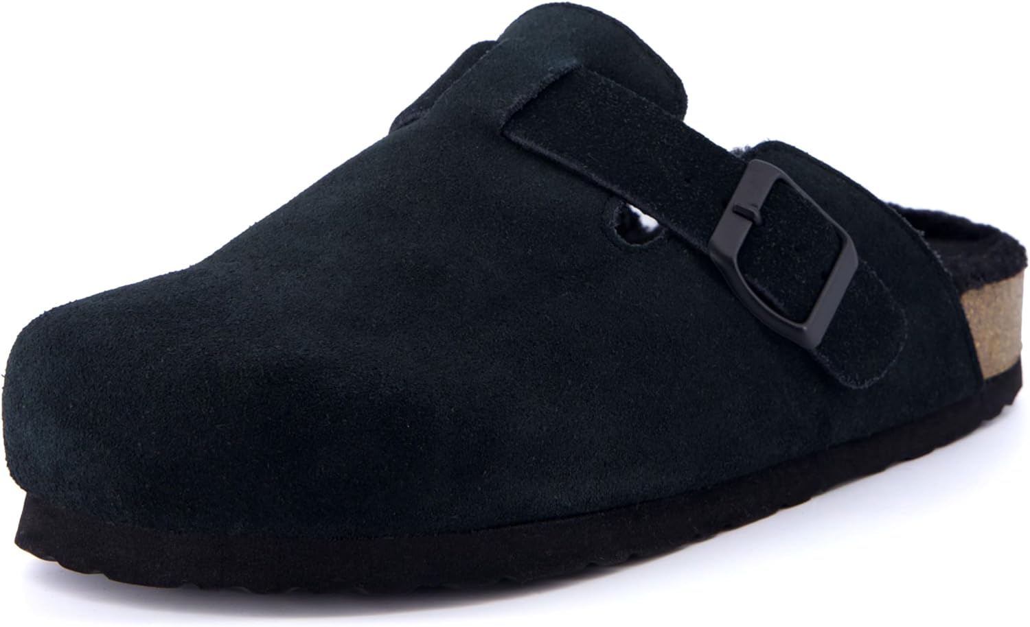 CUSHIONAIRE Women’s Hana Cork footbed clog with Genuine Leather upper, Faux Fur lining, and +Comfort