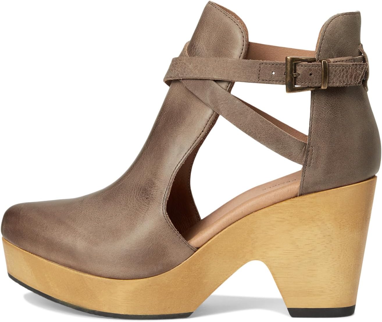 Embrace your boho spirit in these luxe leather clogs, featuring a genuine cedar wood platform sole with an ankle cutout and strappy accents. **Features:** Slip-on style, ankle length, round toe, leather uppers, ankle cutouts, criss-cross straps with adjustable buckle closure, platform cedar wood sole, block heel **Why We <3 It:** Pair with high-rise flares for a groovy look.