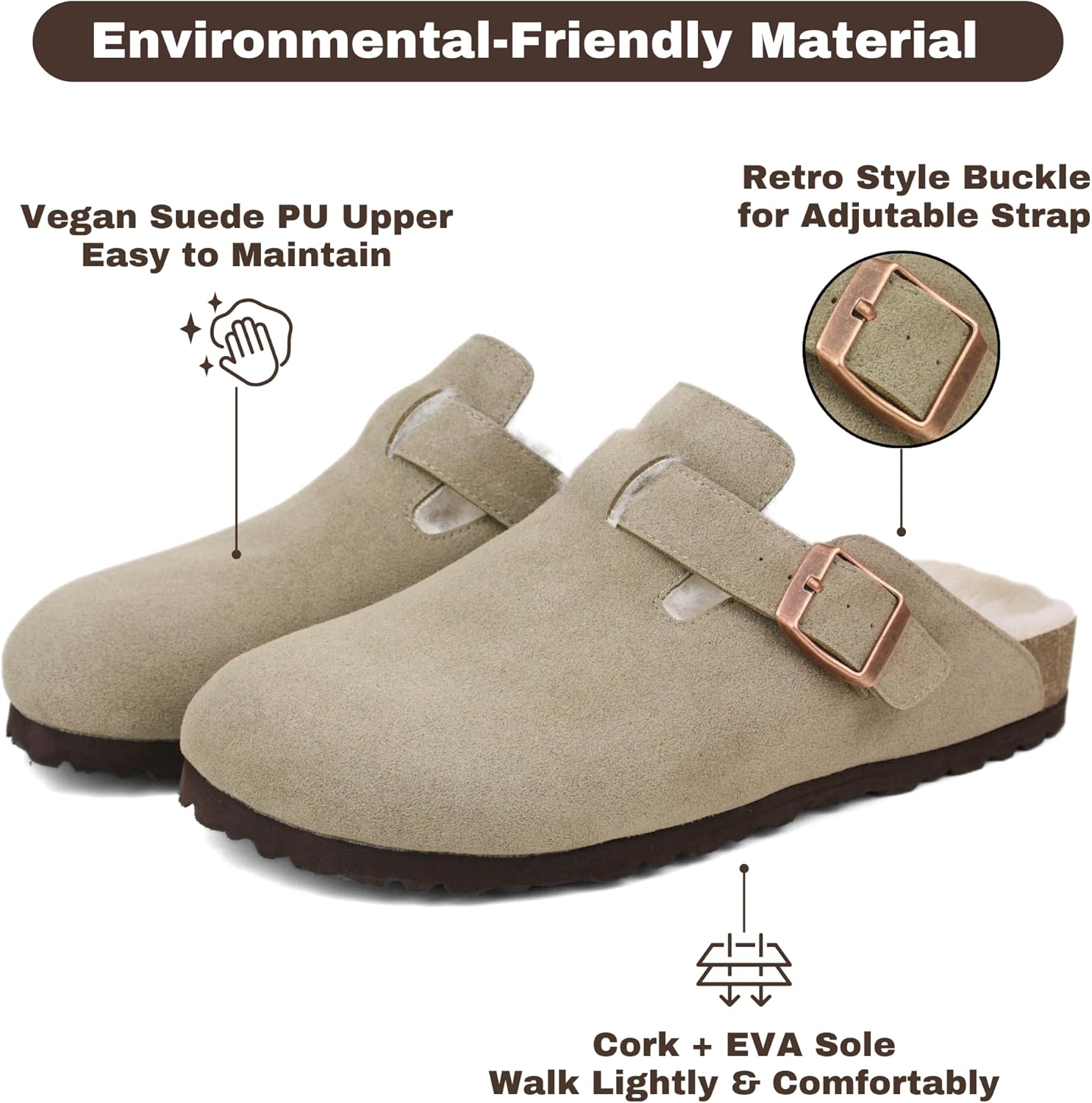 Absolutely. The anatomically contoured cork footbed provides excellent arch support and cushioning, making these slip-on mules perfect for all-day wear.