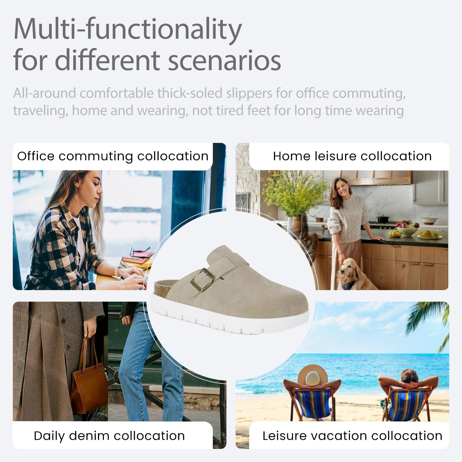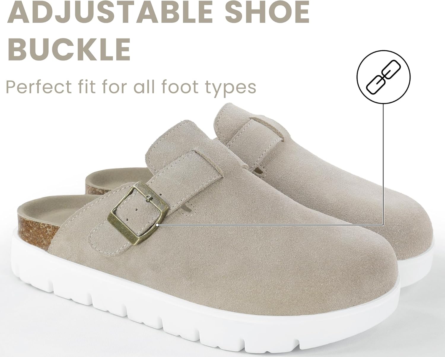 Genuine Leather Chunky Big Buckle Platform Benton Clogs for Women Memory Foam Arch Support Cork Footbed Potato Shoes Mules