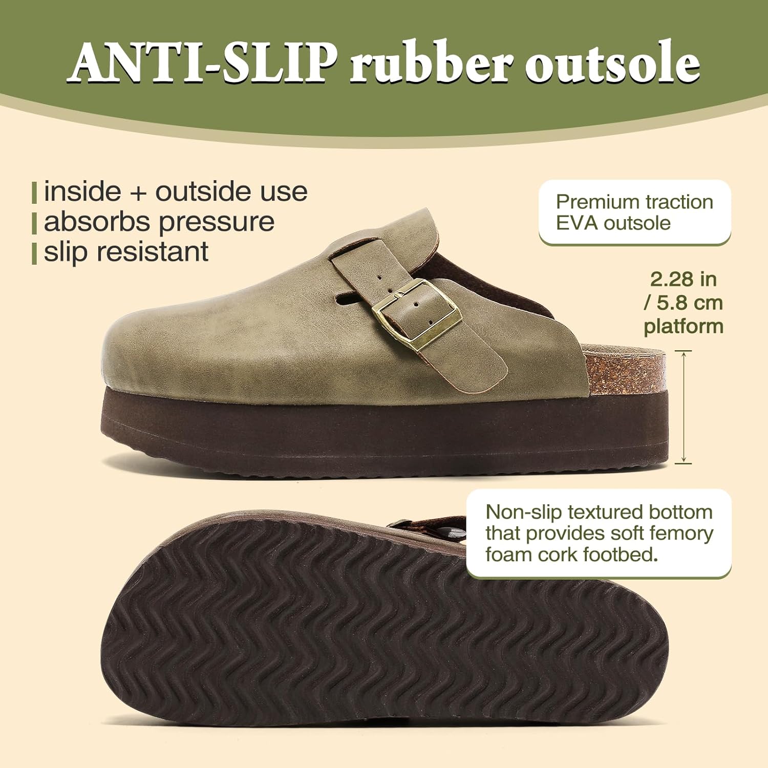 The clogs have a thick, chunky sole that provides added comfort and support.