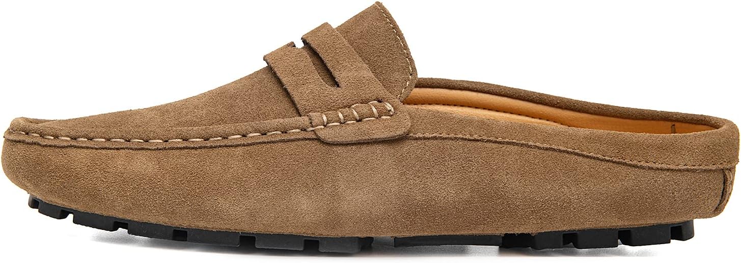 Go Tour Mens Handmade Suede Leather Mules Clog Slippers Breathable Leather Slip on Shoes Casual Loafers