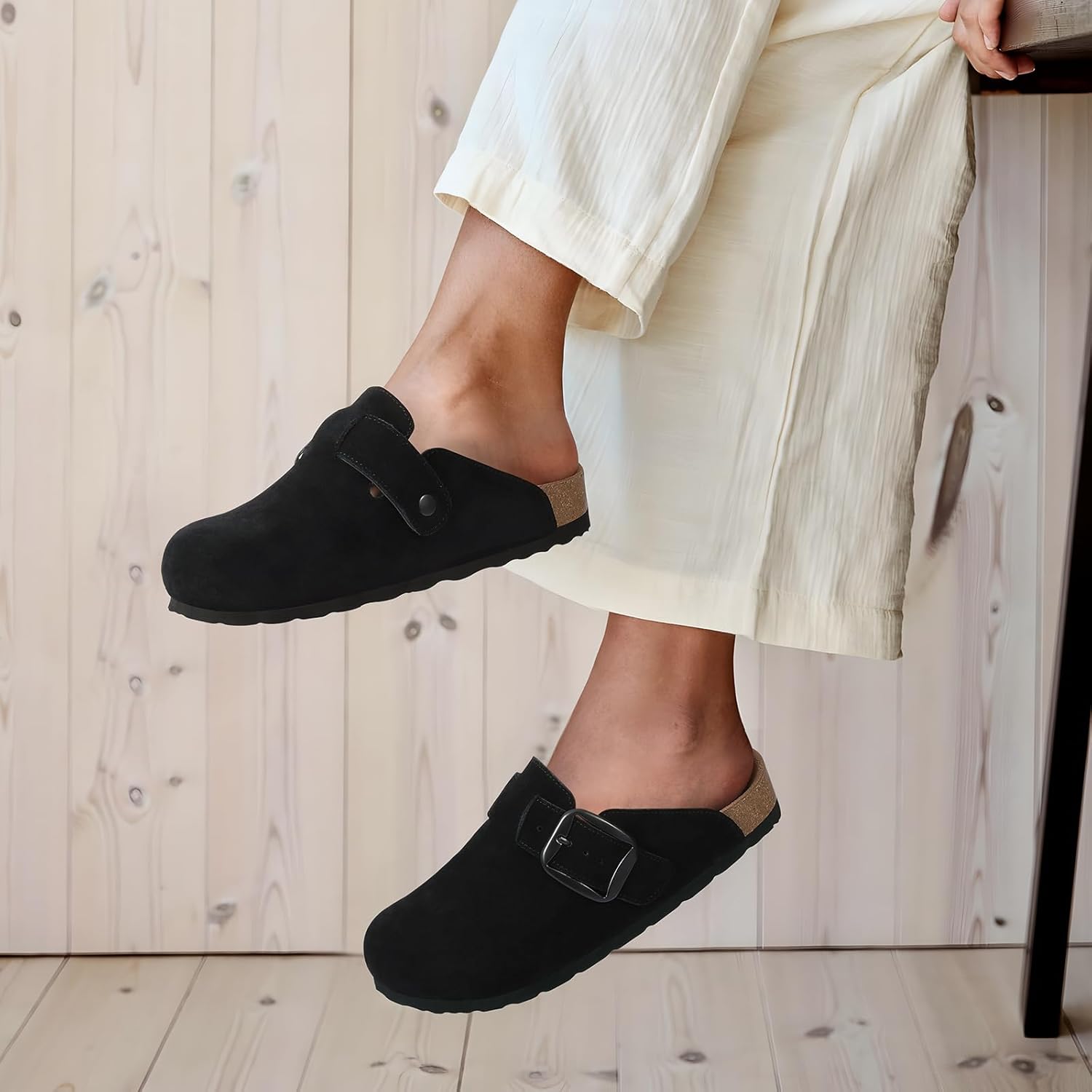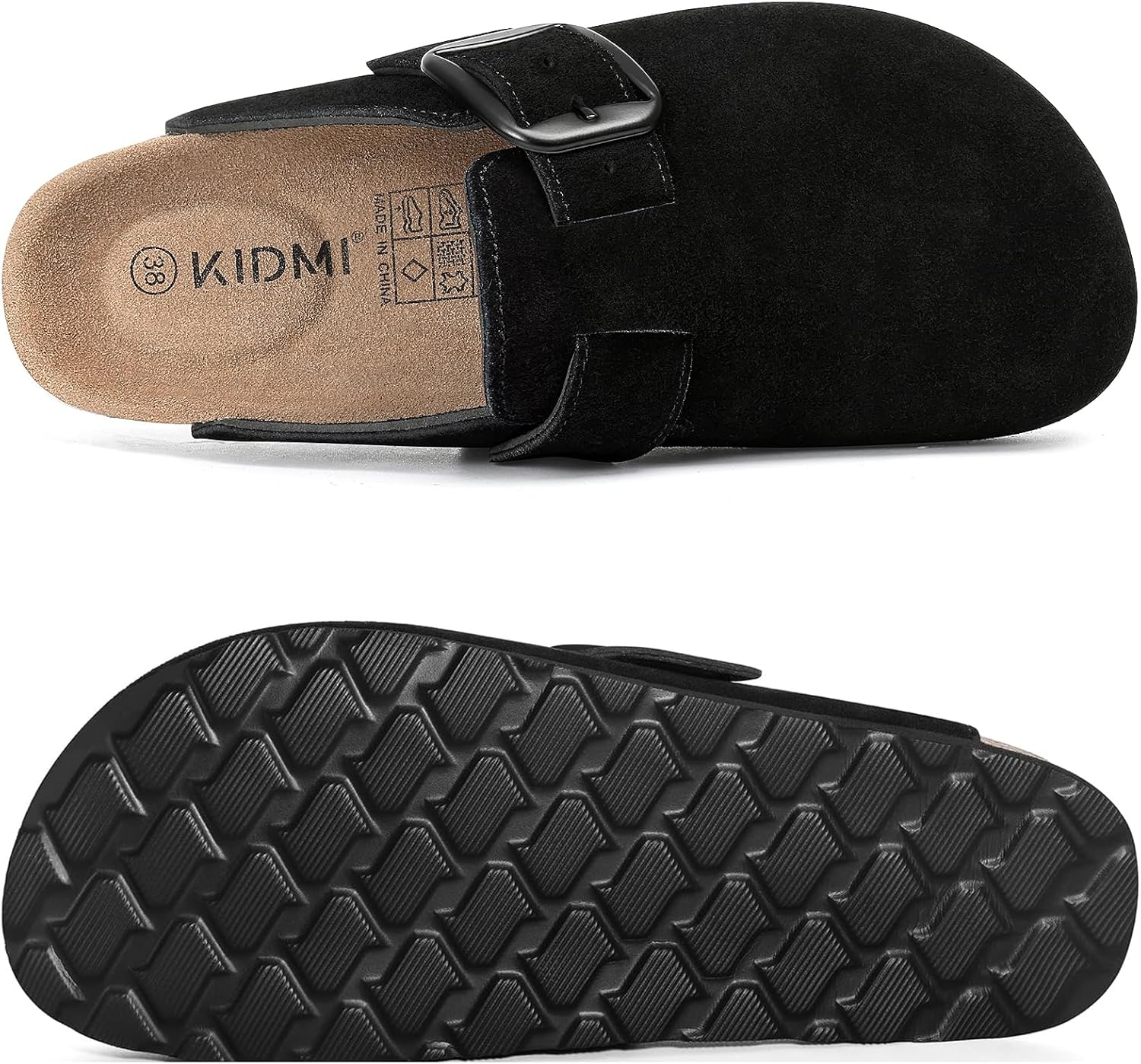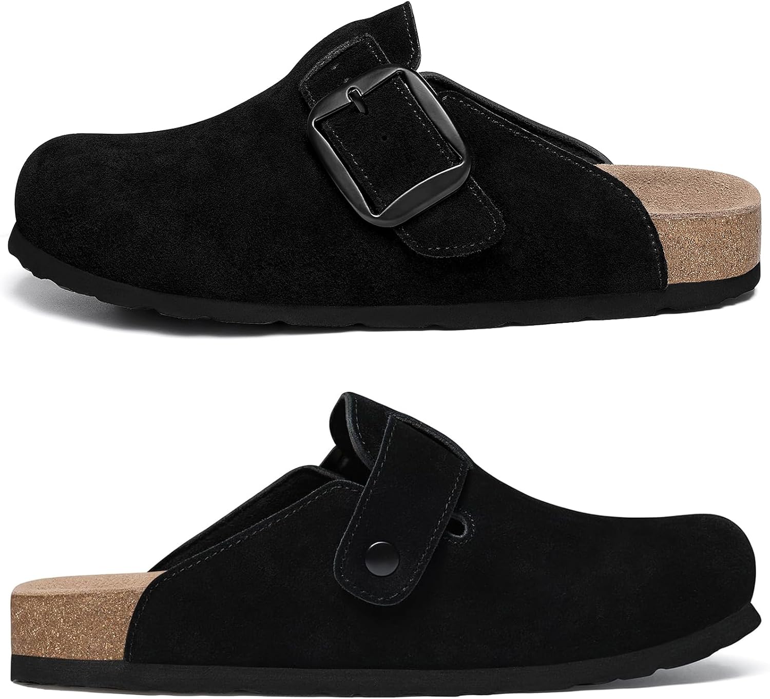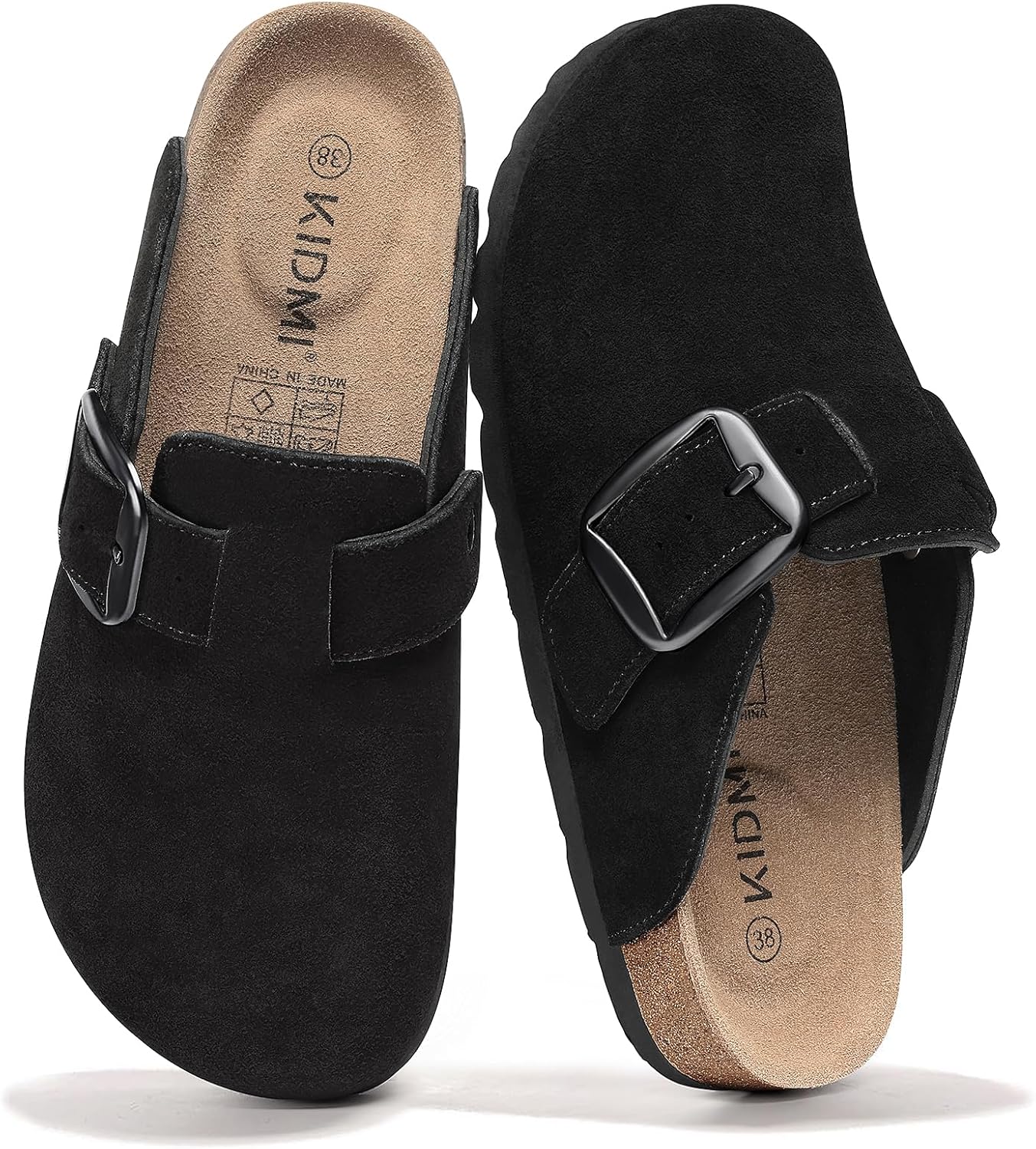 KIDMI Genuine Suede Clogs for Women Memory Foam Cork Footbed Potato Shoes Slip On Leather Mules with Big Buckle