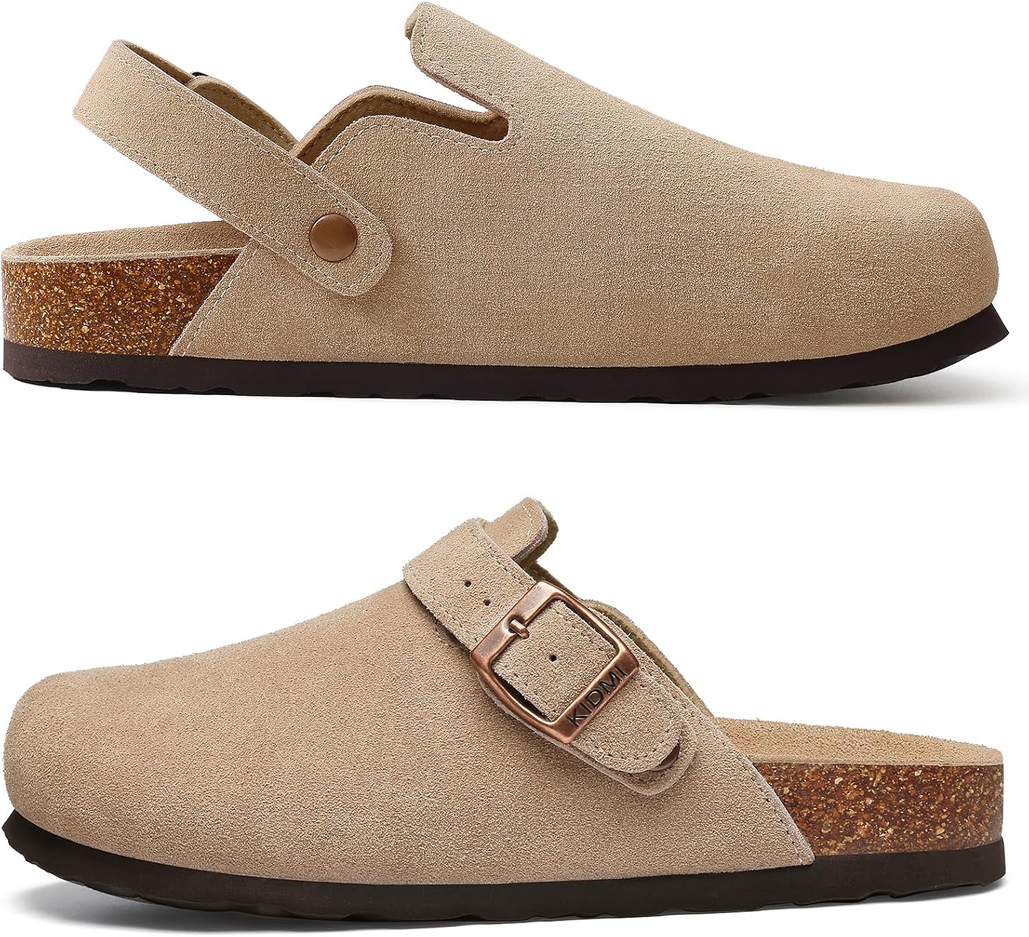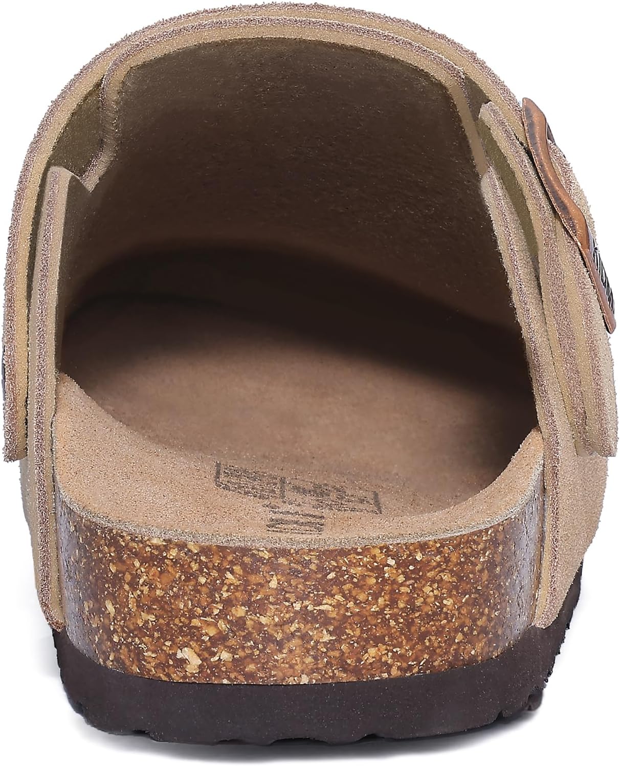 KIDMI Women’s Suede Clogs with Back Strap Men’s Leather Mules Cork Footbed Slip on Potato Shoes