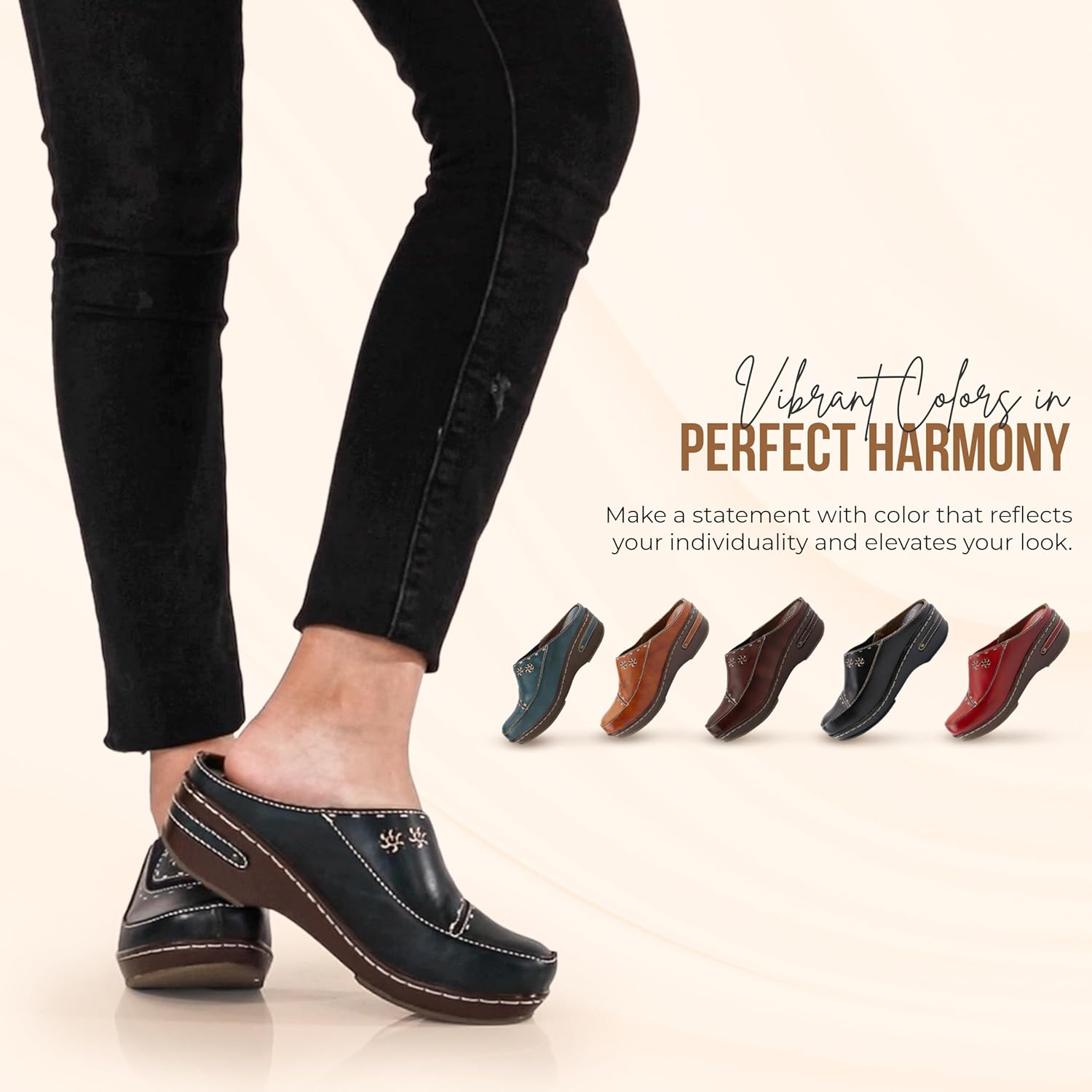 Elevate your casual style with these L’Artiste CHINO Clogs, crafted from premium leather in a striking OLIVE GREEN hue. These open-back clogs feature a low, approximately 2-inch heel, providing comfort and ease of movement, thanks to the elastic sides. The round toe, hand-painted leather, and contrast stitch detail add a touch of elegance, while the synthetic leather lining and padded insole ensure all-day comfort. Perfect for smart casual looks, these imported clogs are a statement piece that combines old-world charm with new-world sensibility. Note that sizing runs small, so consider ordering a size up for the best fit.
