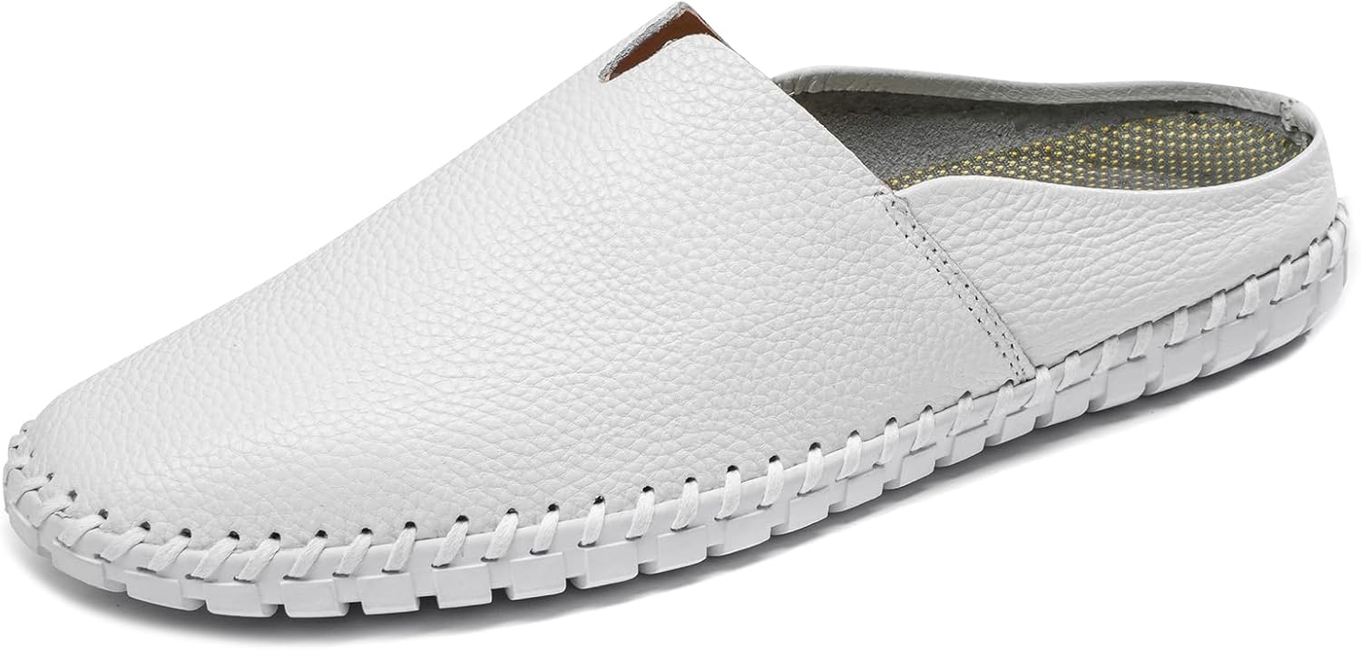 Men’s Slip-On Loafers Mules Clog Handmade Leather Slippers Hand Stitched no-Heel Casual Shoes for Men Breathable Comfortable Soft