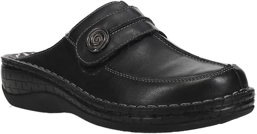 Supple, full-grain leather upper clog with open back, removable footbed accommodates orthotics and pu outsole provides cushion, traction and durable wear and walking comfort. Slip resistance test oily/wet #1: 0.34; greasy/wet: 0.26.