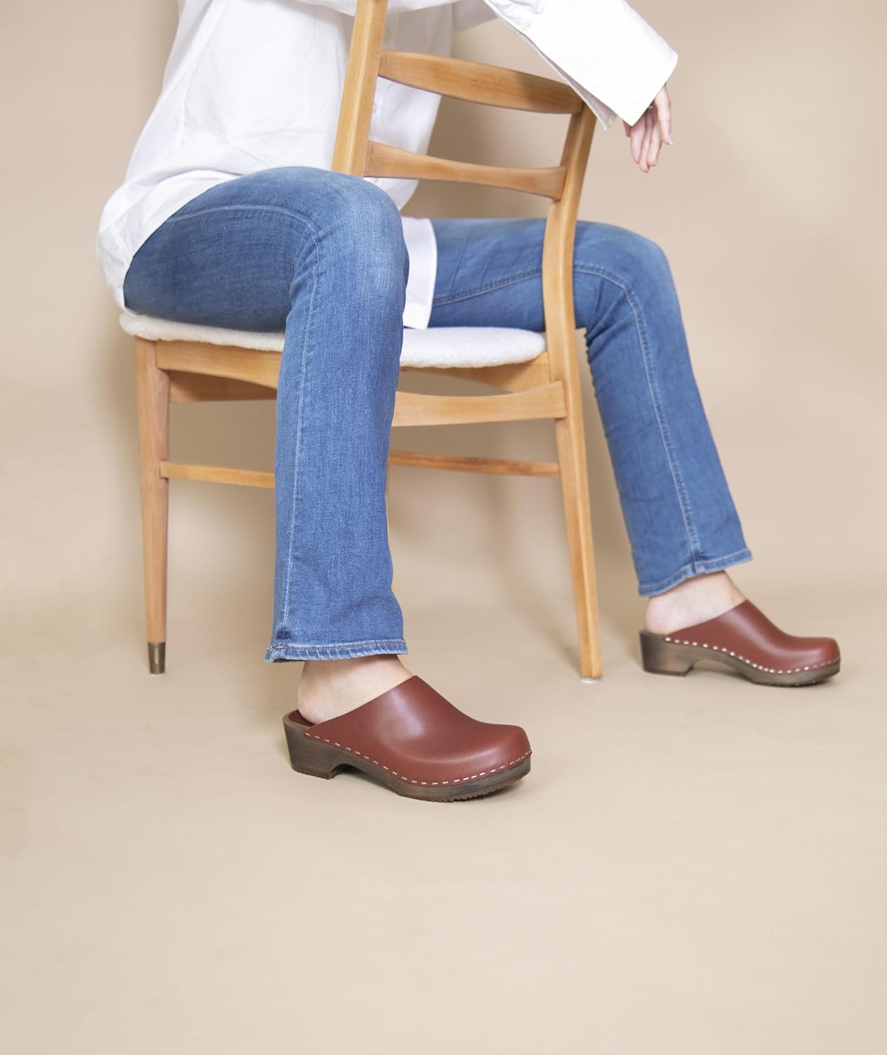 Unlike most shoes, wood clogs won’t bend so your heel will lift as you walk. This may take some getting used to if you’re new to clogs. Take your time, wear your clogs for short periods while you become accustomed to the gentle rock of the wood base.