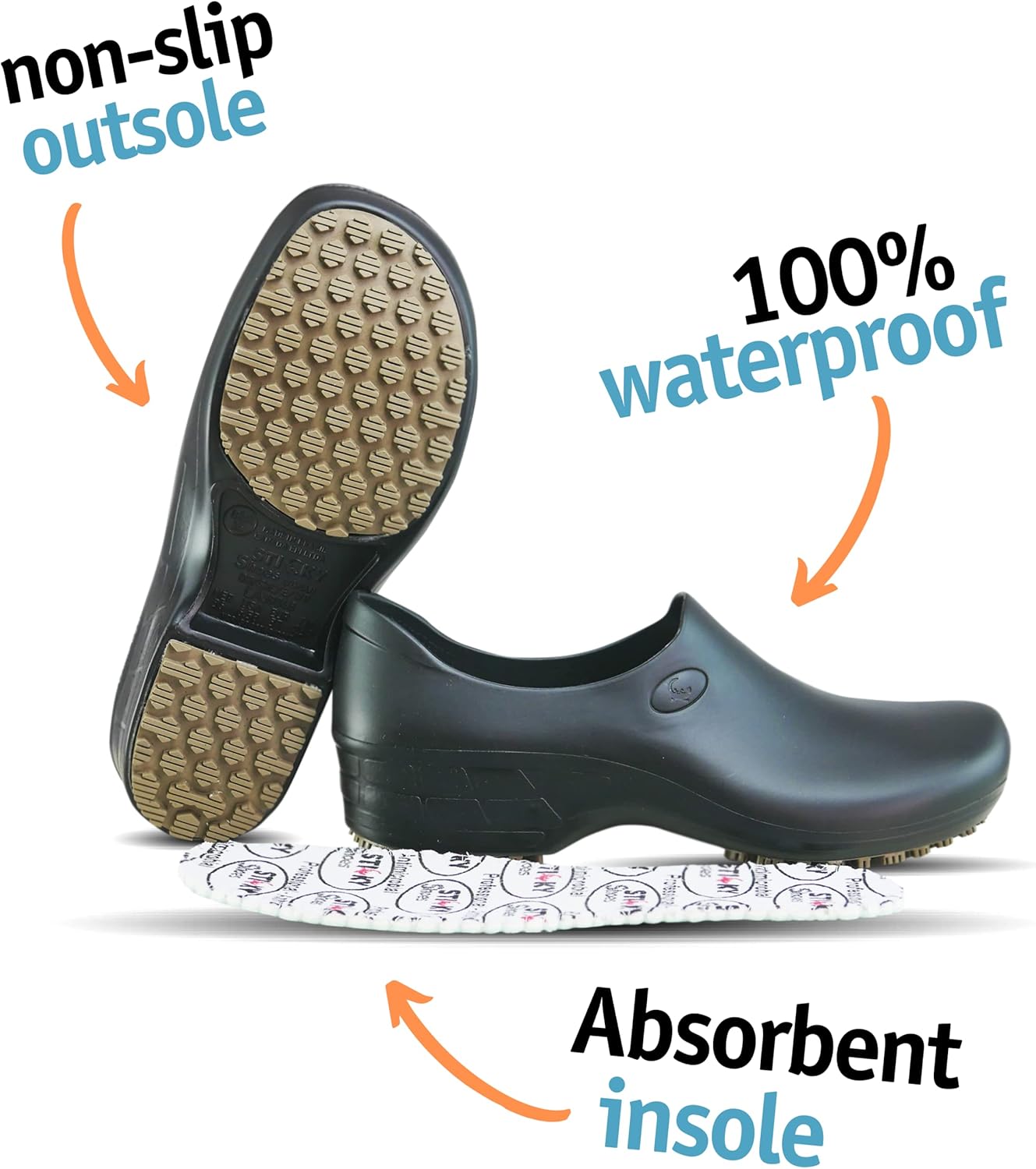 Women Sizes – Professionals have to worry about so many things everyday, so when it comes to your shoes it has to be the right choice. With these Waterproof shoes with non slip outsoles you can work in different environments without getting wet. The outsole will keep you protected even on extra slippery floors. Sometimes, for waterproof shoes, your feet can’t breathe properly, that’s why these shoes are made with an absorbent footbed. They will keep your feet dry and comfortable! We know how intense your routine is, so these shoes are made with a shock absorbent system! Feel the comfort.