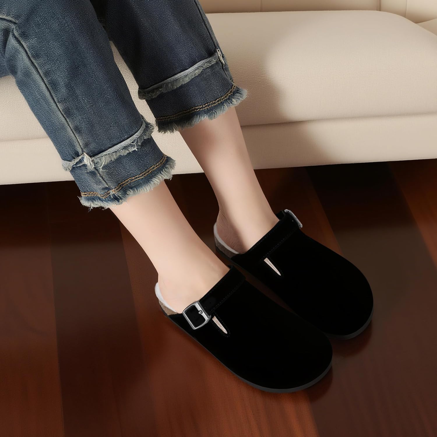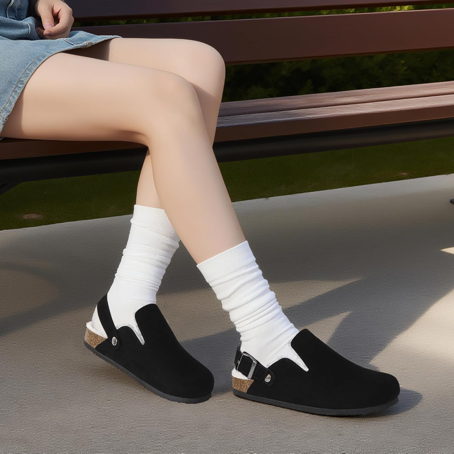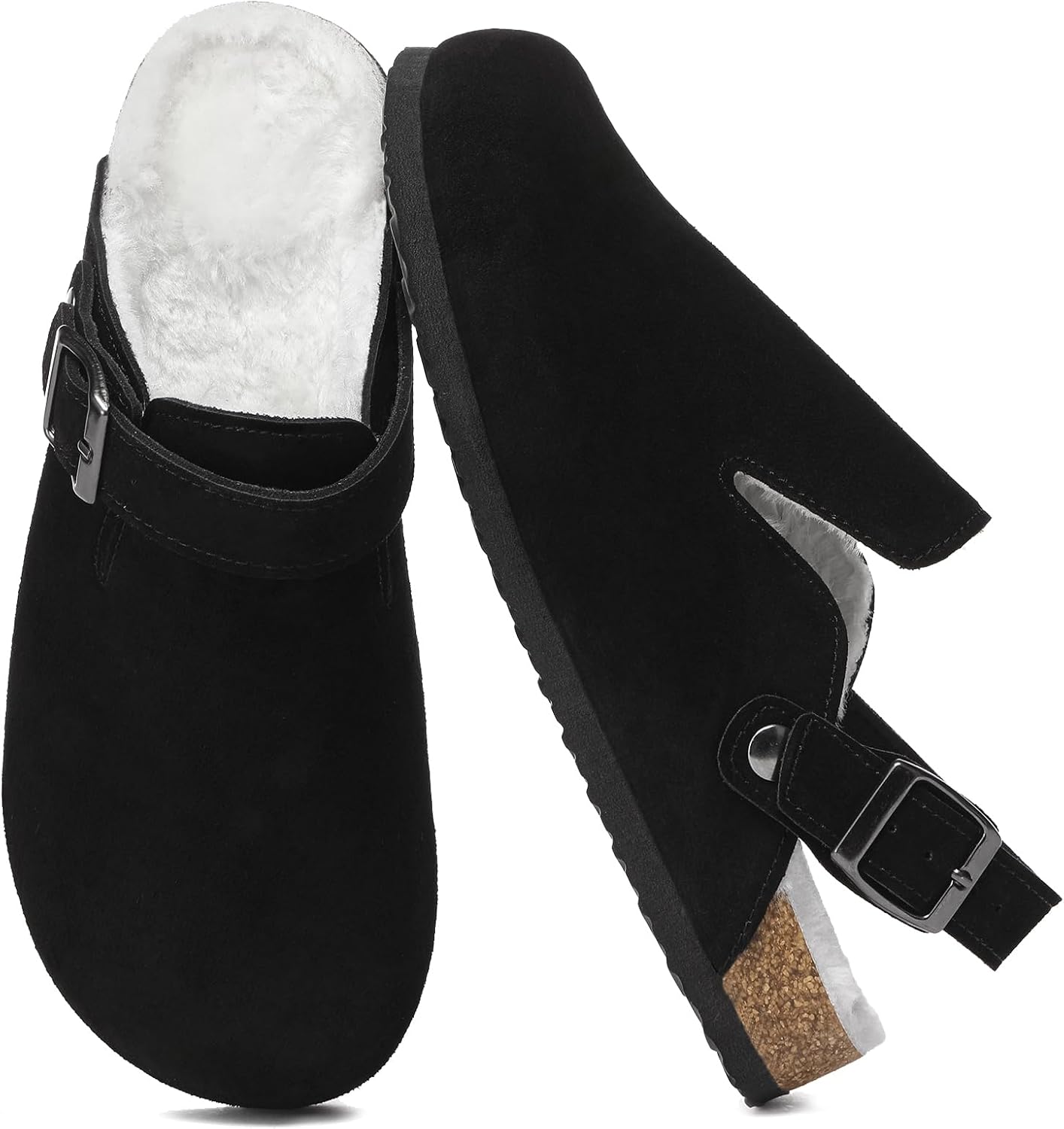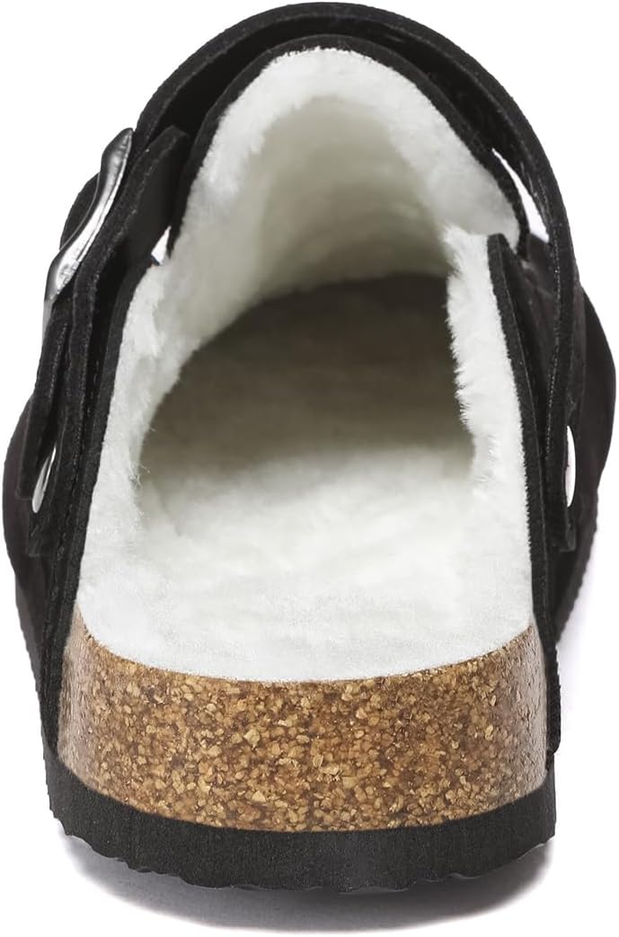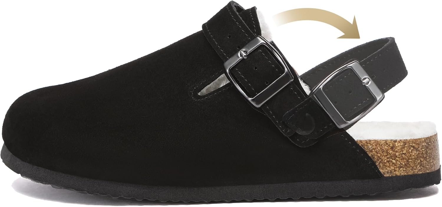 Suede Clogs for Women Leather Mules Adjustable Buckle with Comfort Cork Footbed and Arch Support