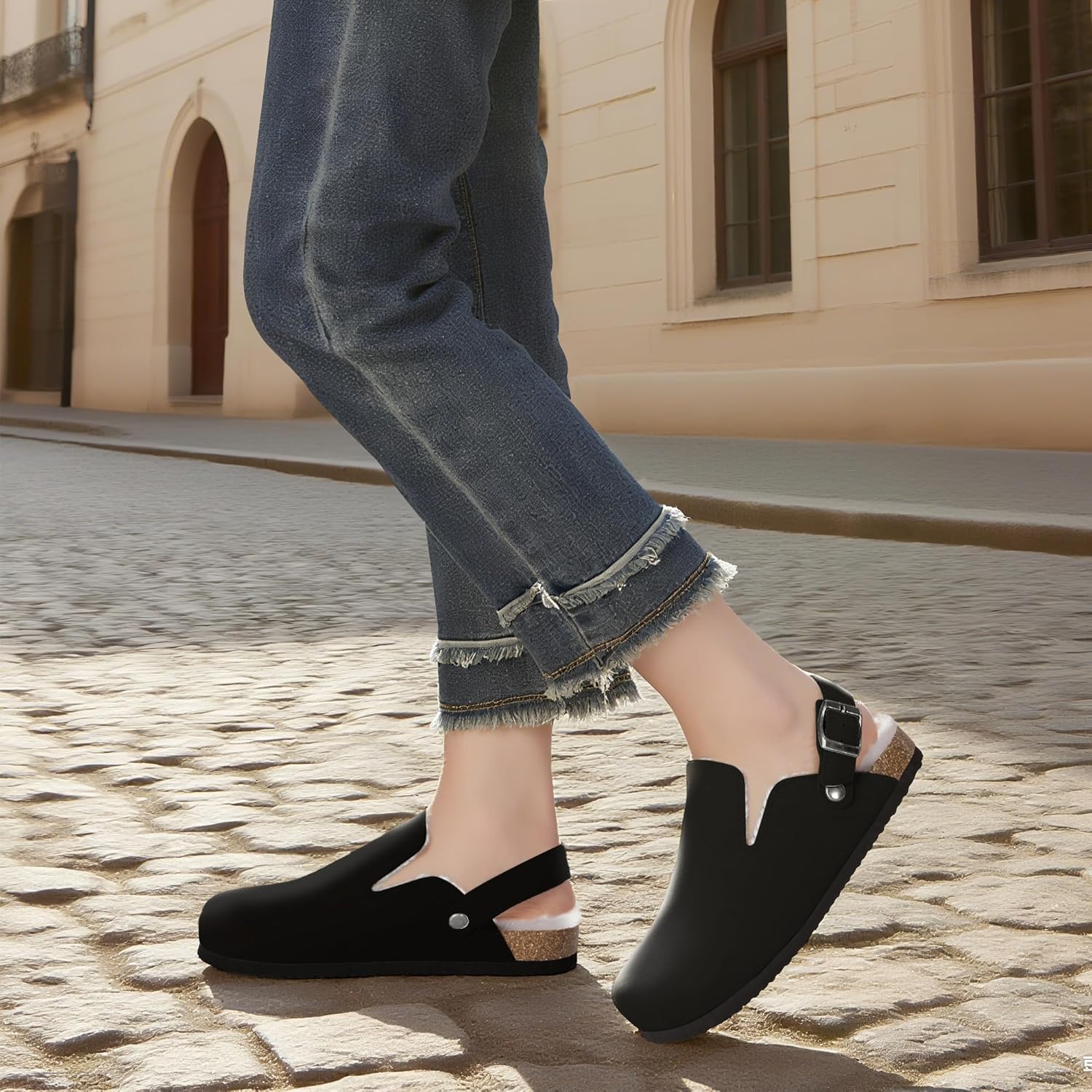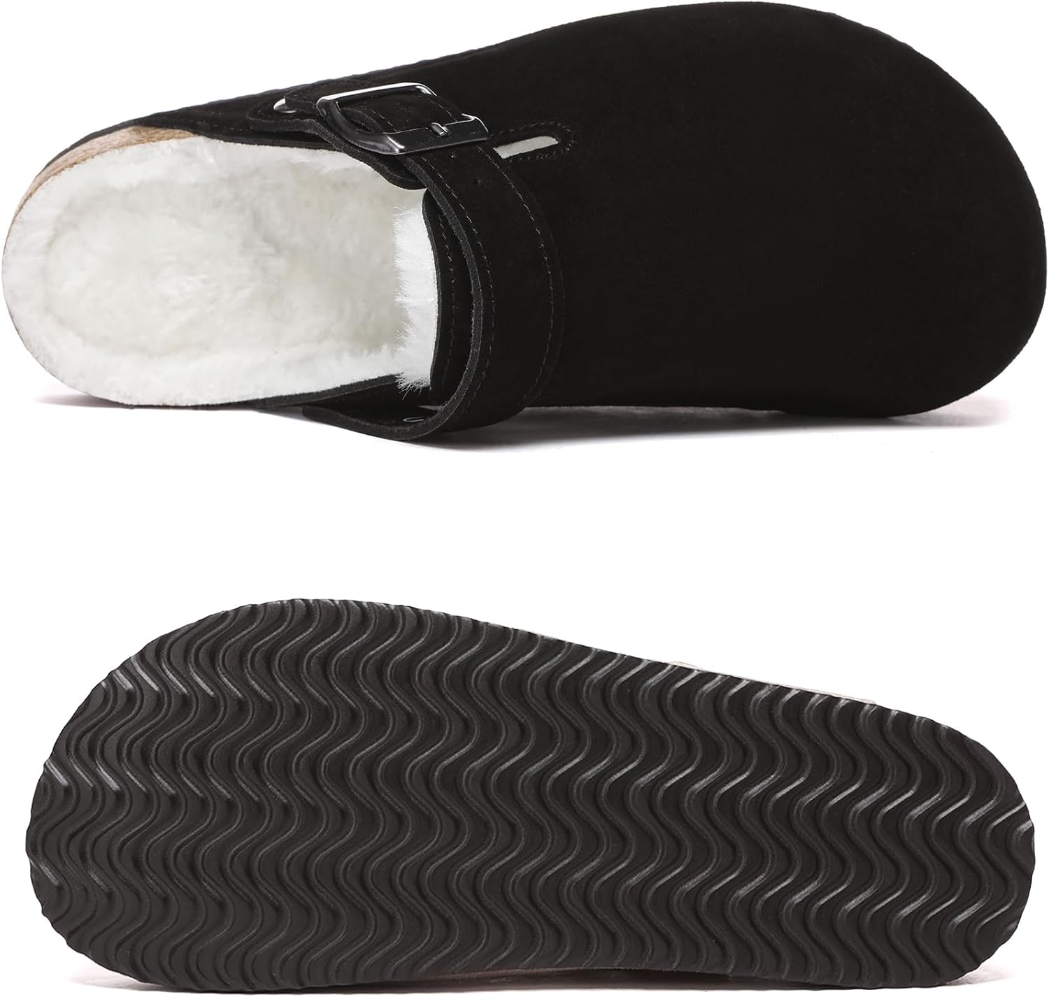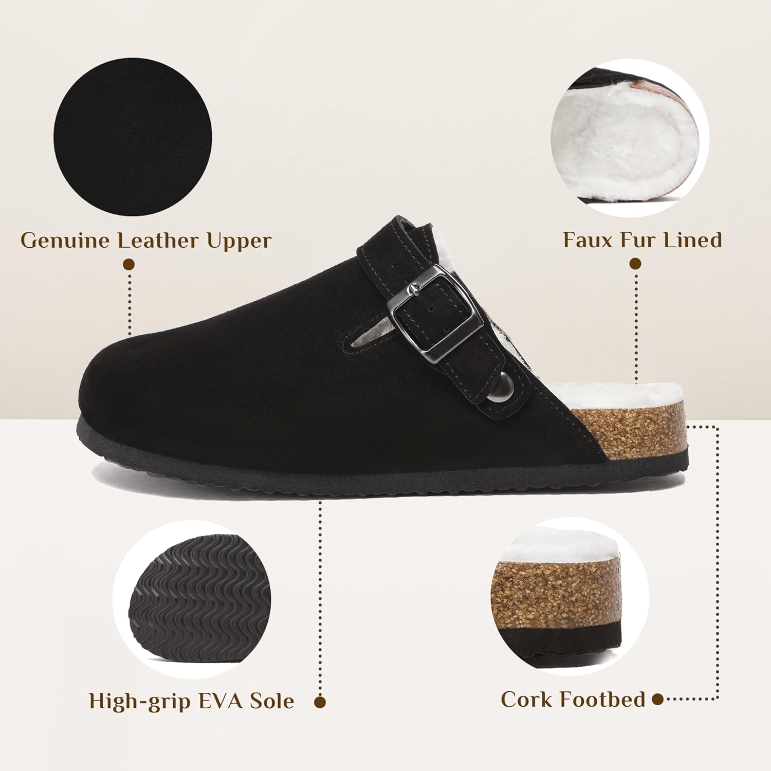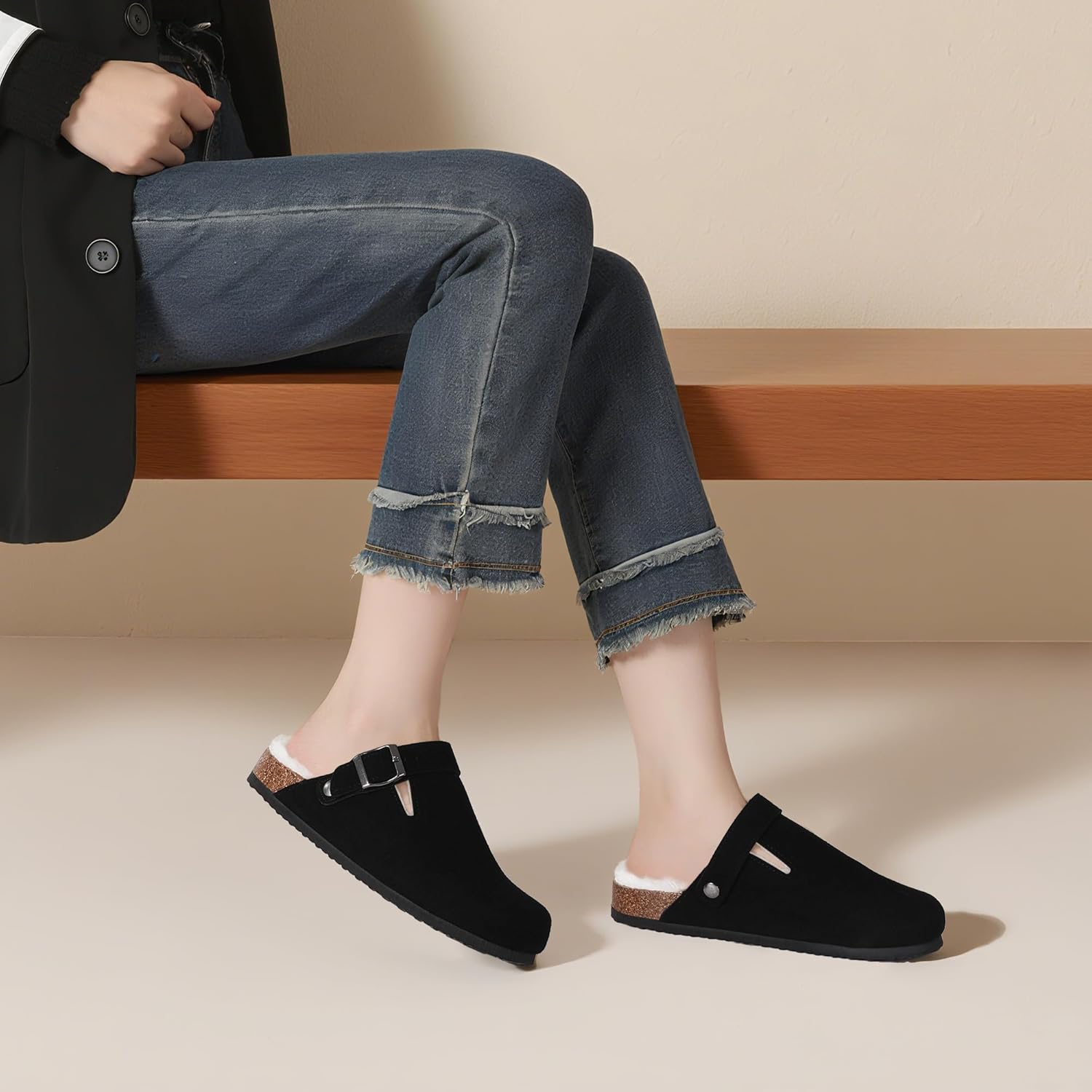 Suede Clogs for Women Leather Mules Adjustable Buckle with Comfort Cork Footbed and Arch Support