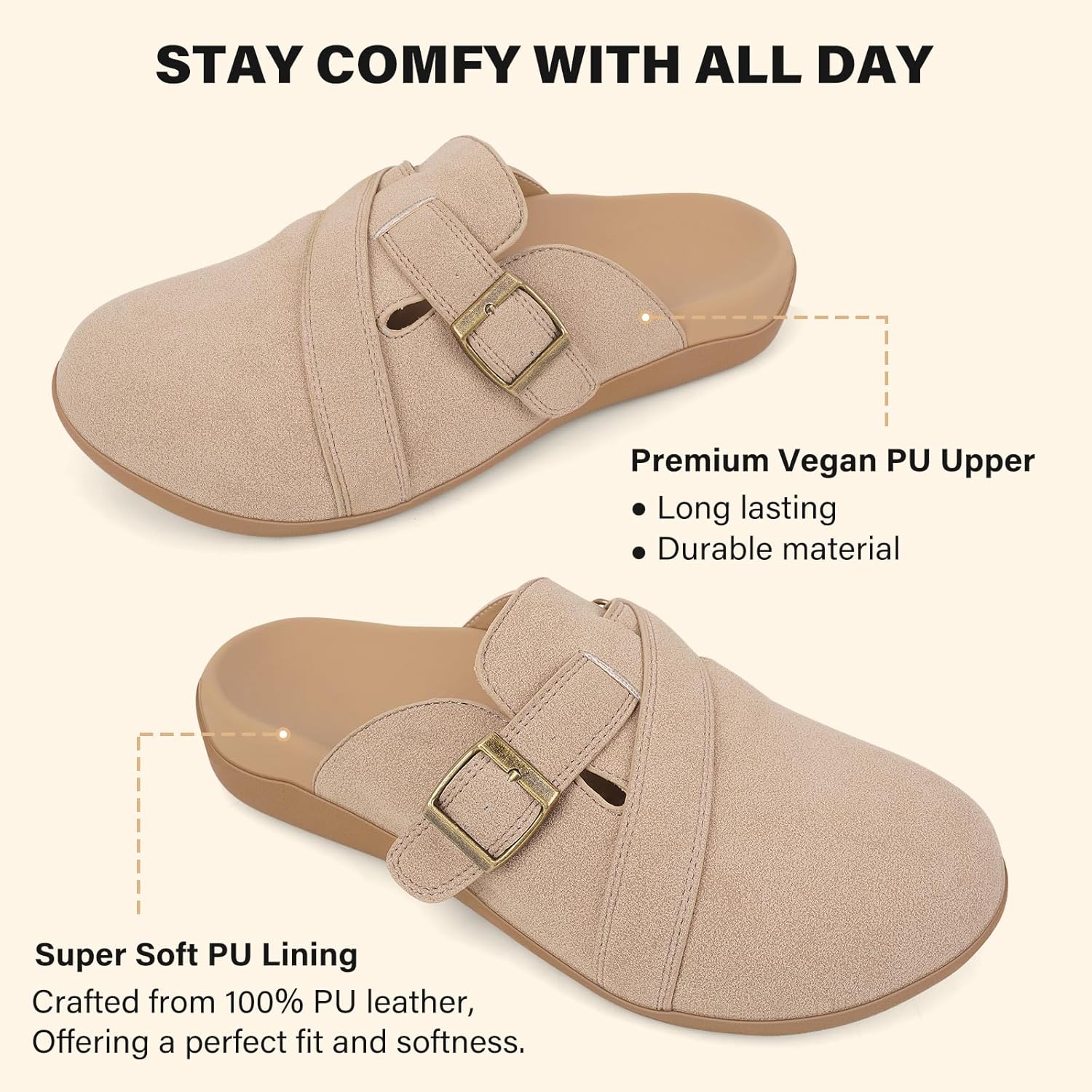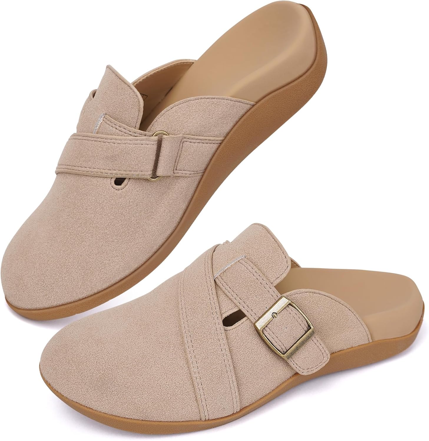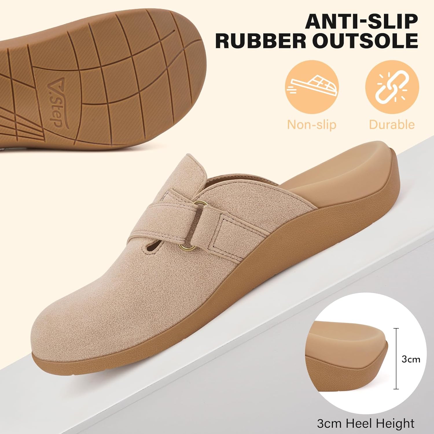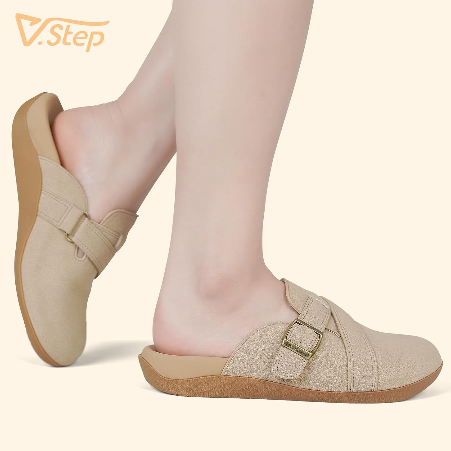 V.Step Women Orthopedic Clog Slippers with Arch Support, Suede Clogs Leather Mules, Orthotic Slippers Potato Shoes for Plantar Fasciitis, Slip on Adjustable Indoor Outdoor Sandals Foot Pain Relief
