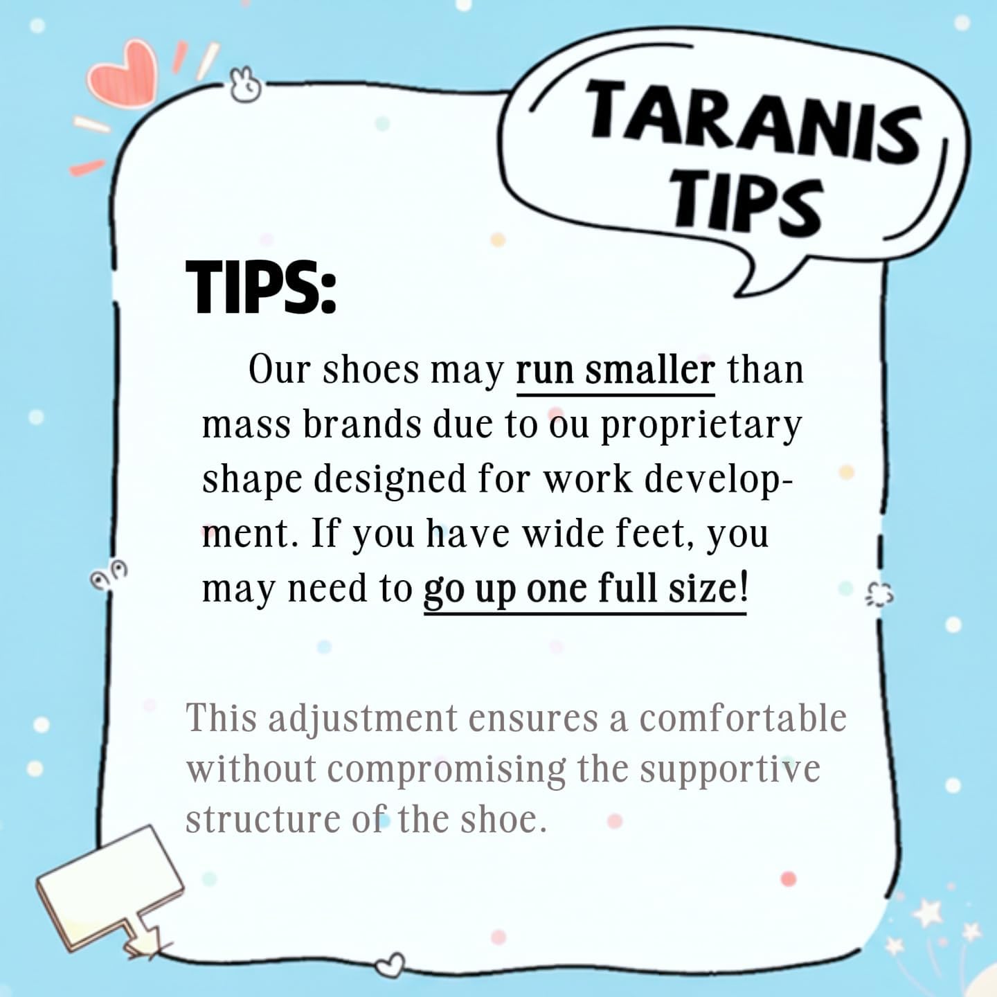 To ensure comfort when wearing, we suggest prioritizing a size half to one full size bigger than your regular size, according to feedback and fitting advice from numerous customers. Avoid issues such as the shoes being too small.