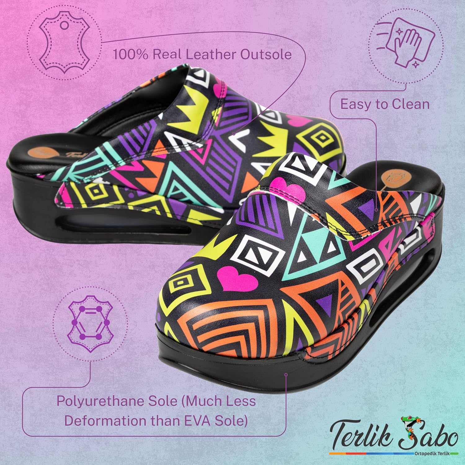 Womens Clogs with Arch Support, Pure Leather, Slip-On Clogs for Women, Perfect for Daily Indoor and Outdoor Usage, Shock Absorption, Breathable Materials