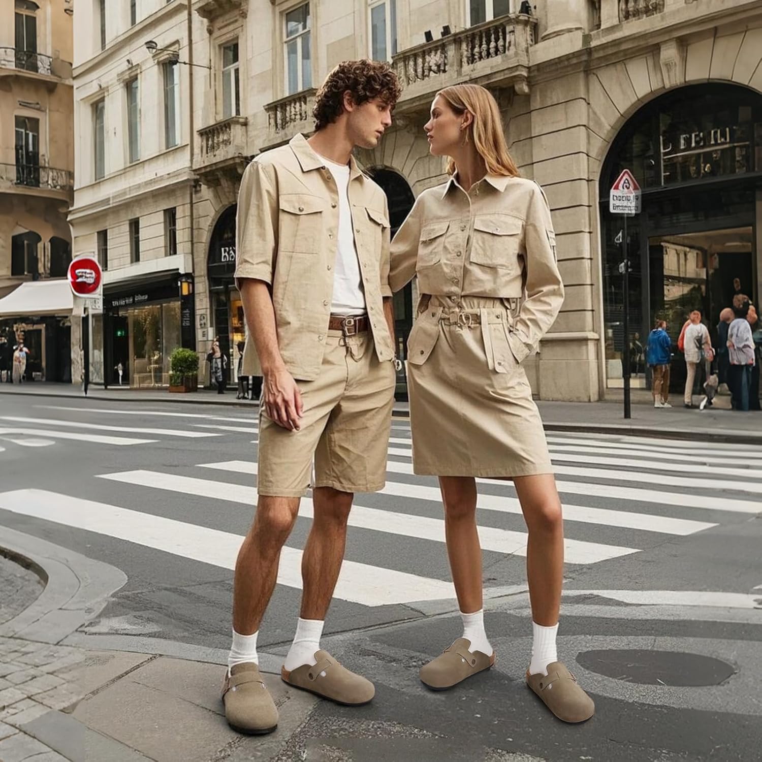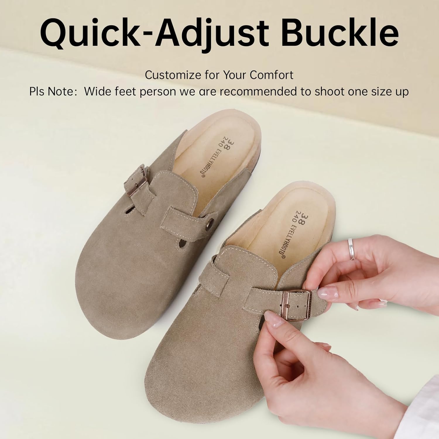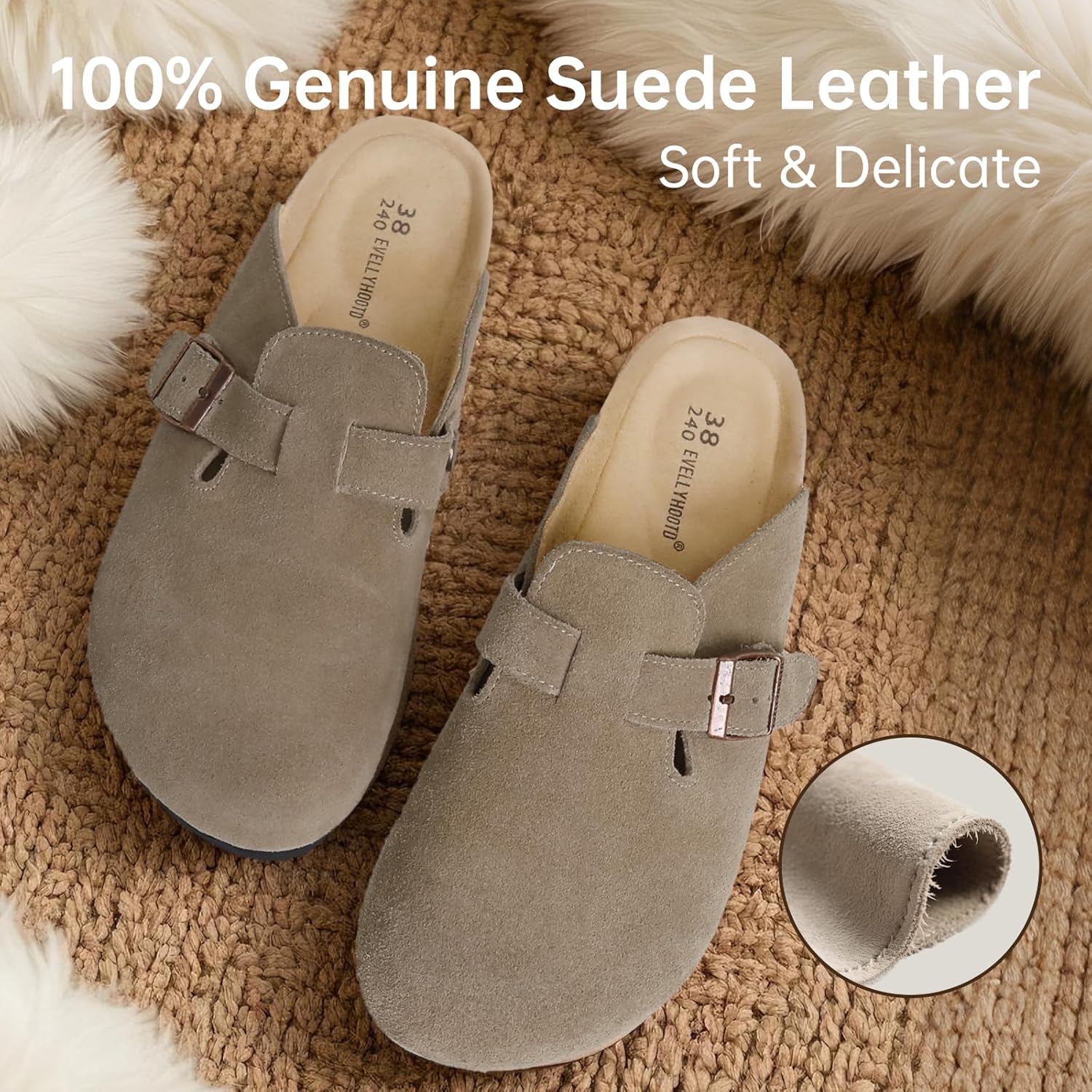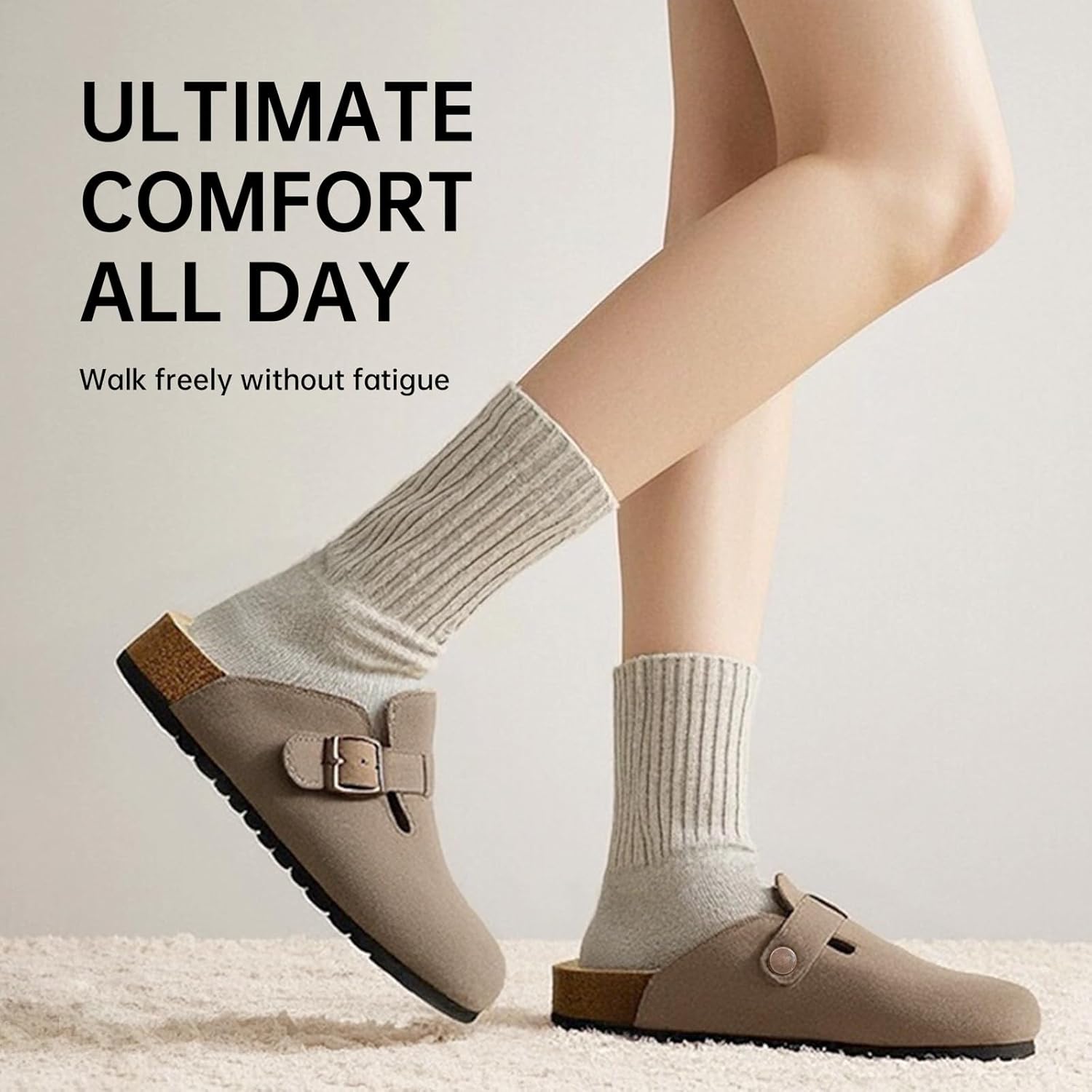 Women’s Men’s Suede Clogs Leather Mules Cork Footbed Sandals Comfort Potato Shoes with Arch Support(with Socks)