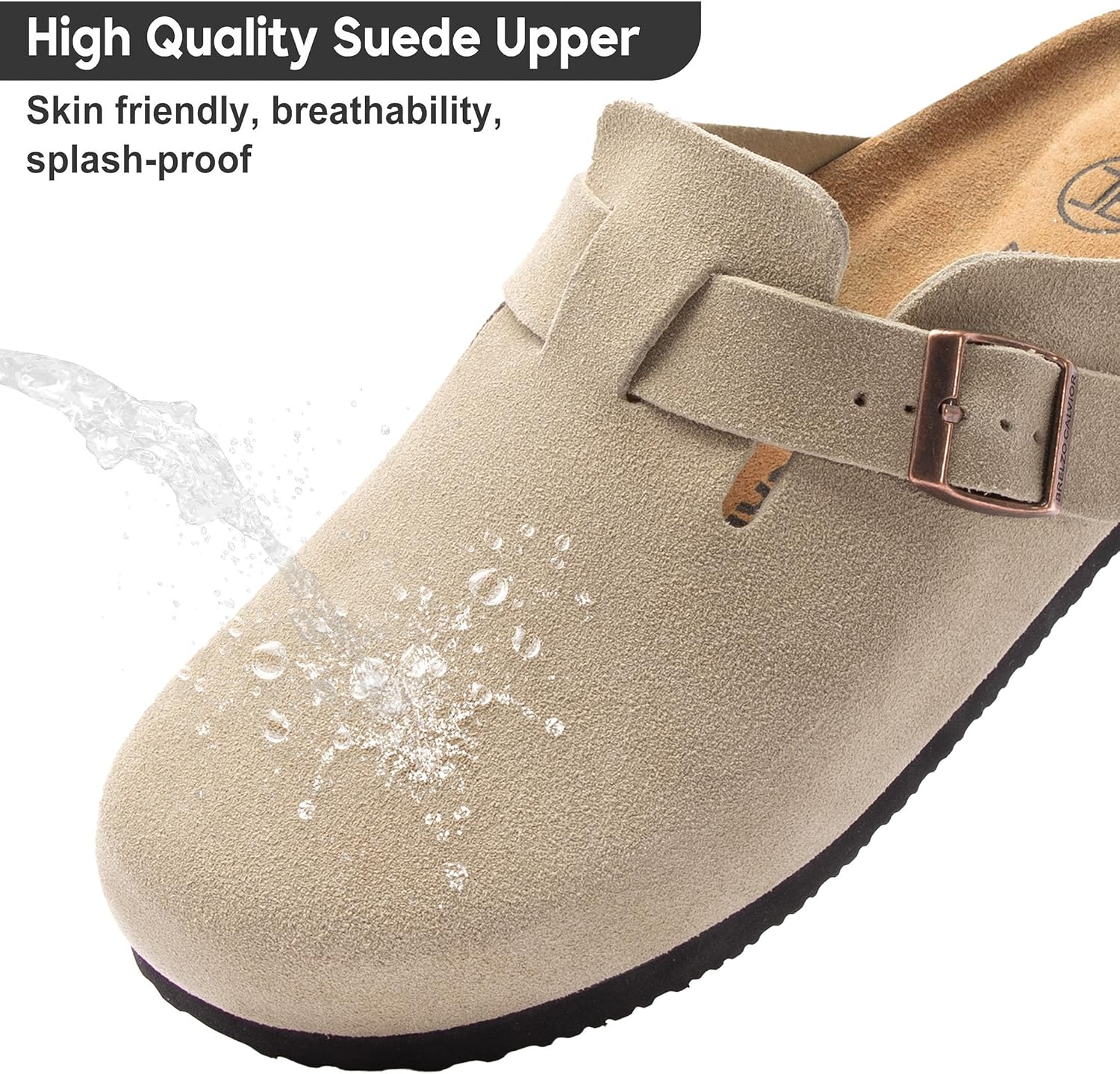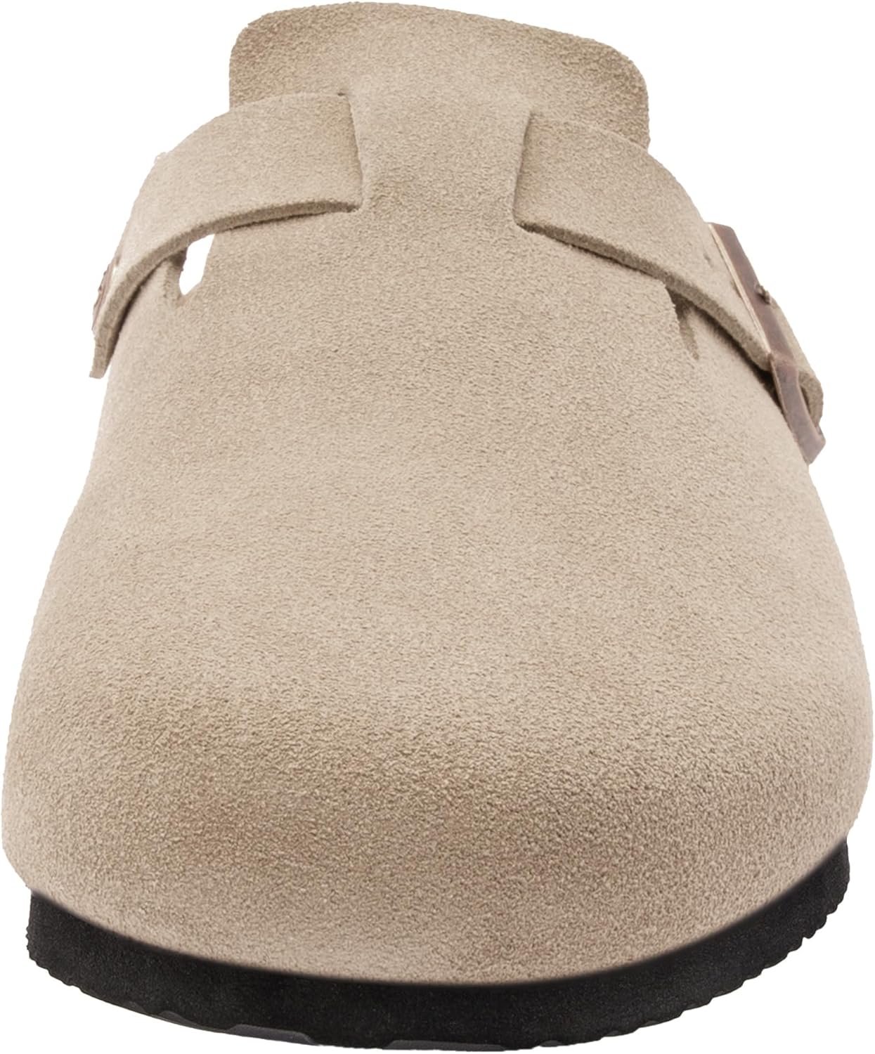Women’s Suede Clogs Men’s Slip-On Mules Non-Slip Potato Shoes Arch Support Sandals with Adjustable Buckle for Indoor & Outdoor Use