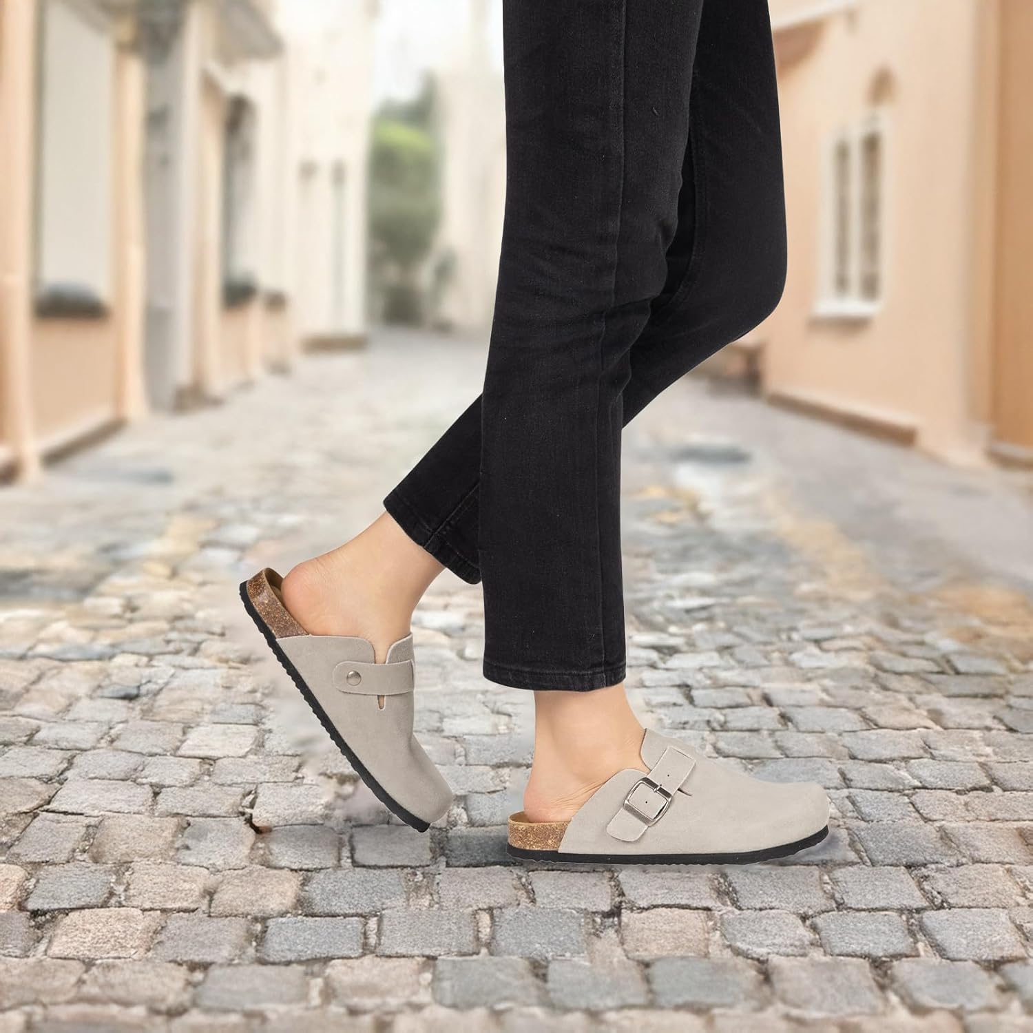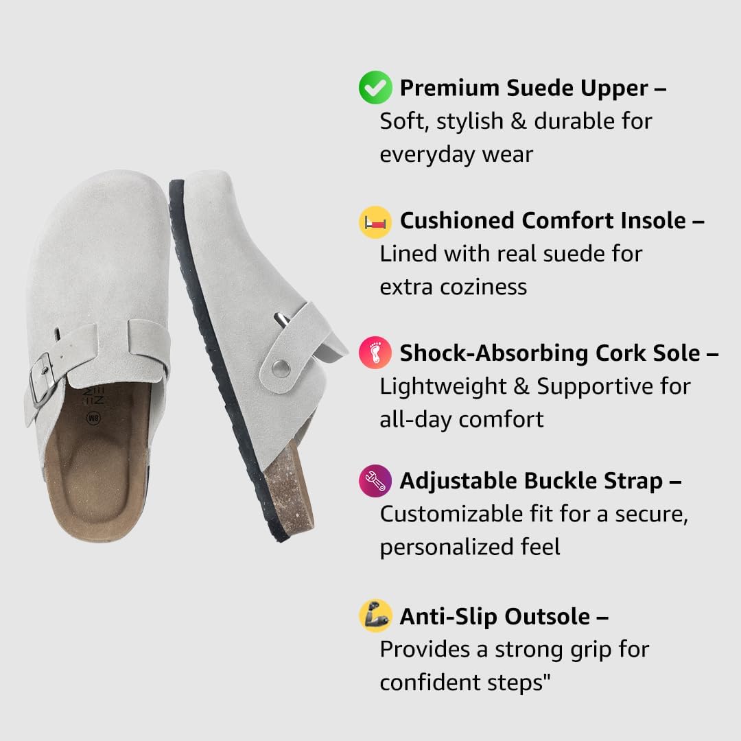 Discover the perfect blend of style and comfort with our Women’s Slip-On Buckle Suede Clogs. These classic cork clogs feature genuine suede and adjustable buckle straps, delivering a soft, cozy touch for all-day wear. Designed with a cork footbed for arch support, they are lightweight, durable, and ideal for both indoor and outdoor use. Whether you’re pairing them with casual outfits or stepping out for errands, these clogs for women bring effortless style to your wardrobe. Available in multiple colors and trendy designs, they’re the perfect fit for all occasions.