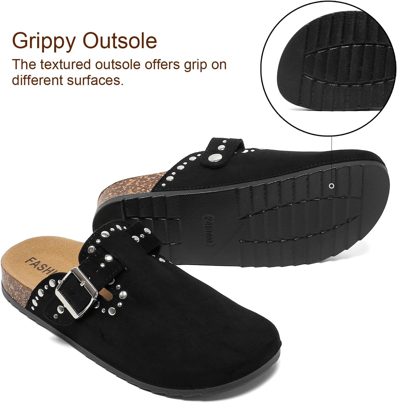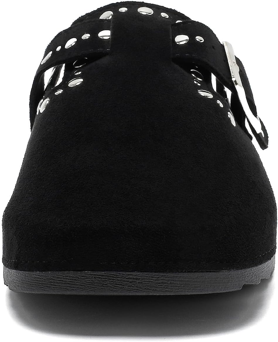 YorFotMae Womens Suede Clogs Mens Leather Slip On Mules Comfortable Adjustable Buckle Arch Support Slippers Cork Footbed Studded Potato Shoes