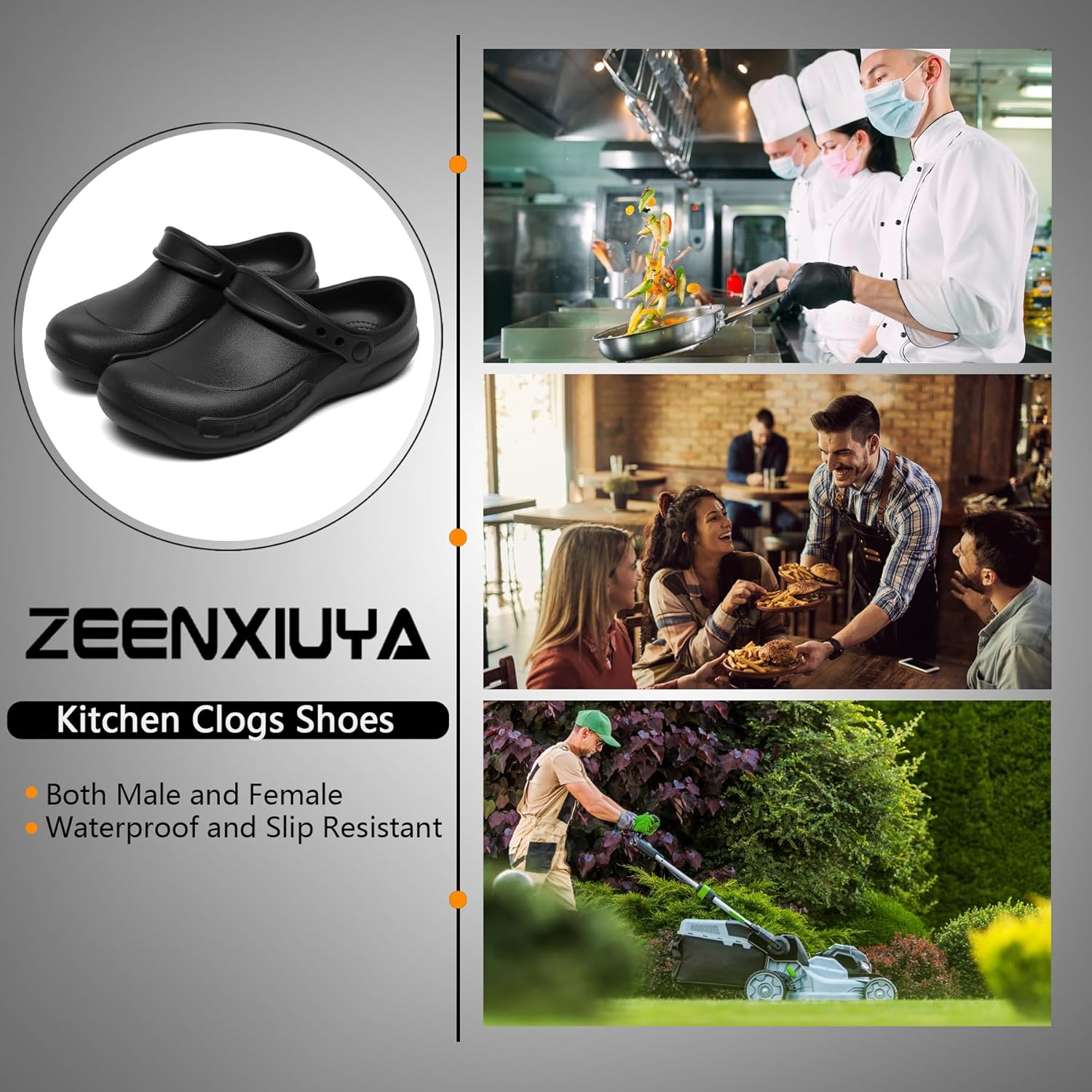 ZEENXIUYA Non Slip Work Shoes meet the slip resistant needs of professionals working in the healthcare, restaurant and service industries. Suitable for Many Occasions restaurants, laboratories, indoor homes, outdoor, kitchens, clinics, hospitals and retail.ZEENXIUYA Non Slip Work Clogs closed toe design, you can wear it for life and casual or use it at work. Please note that the overall quality of the clogs is hard and without insoles.