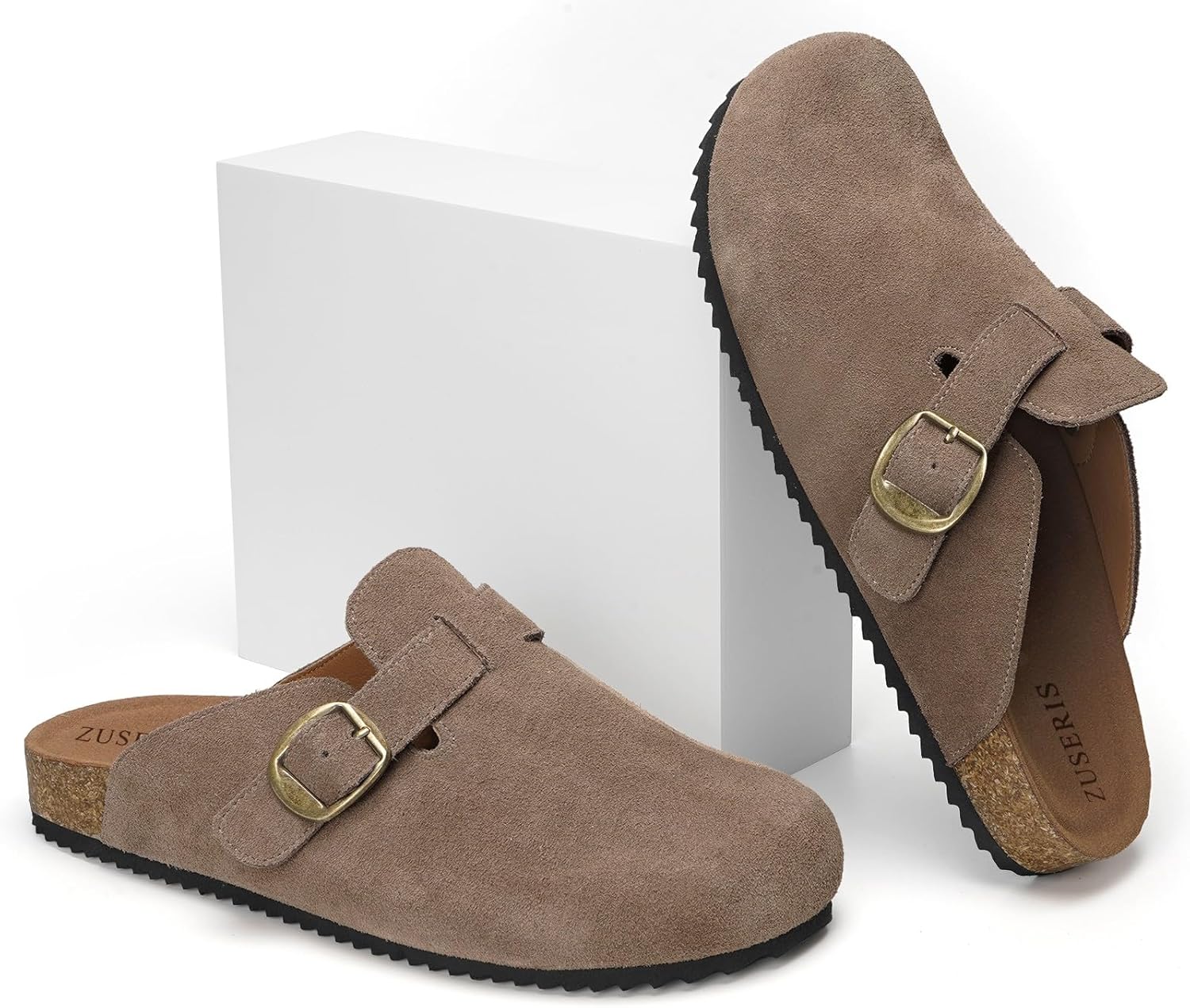ZUSERIS Women’s Men’s Suede Clogs Wide Width Leather Mules Cork Footbed Sandals Slip on Comfort Potato Shoes with Arch Support